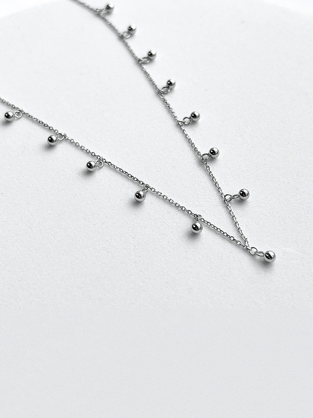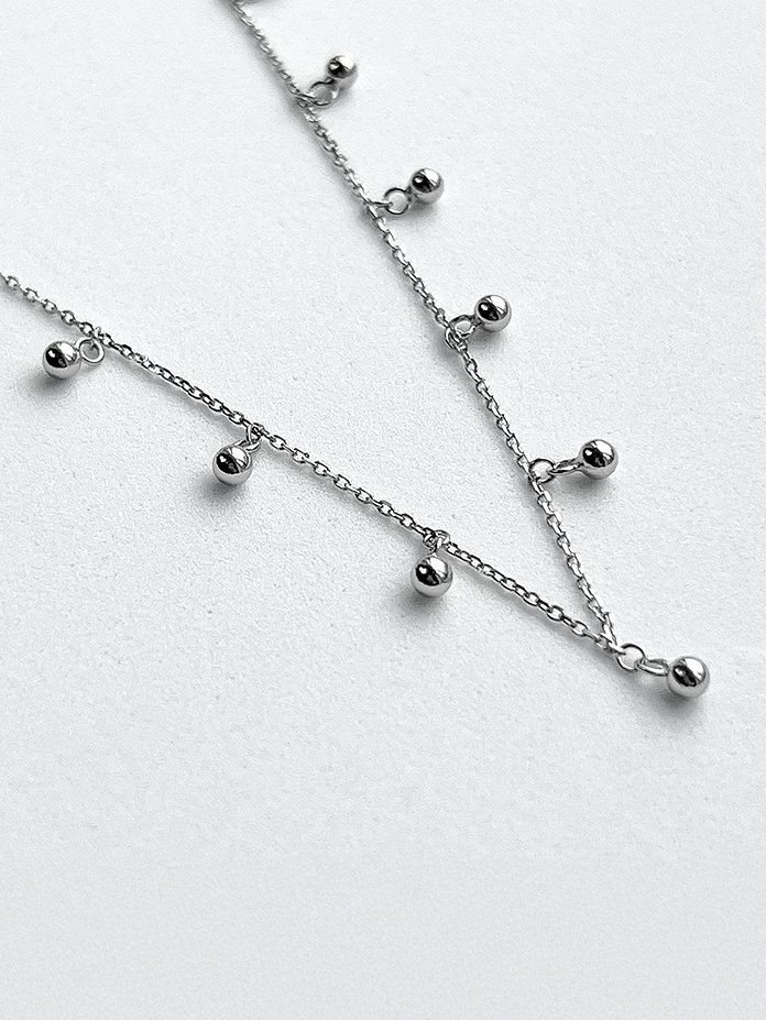Лаконічне срібне кольє з підвісками у вигляді кульок.