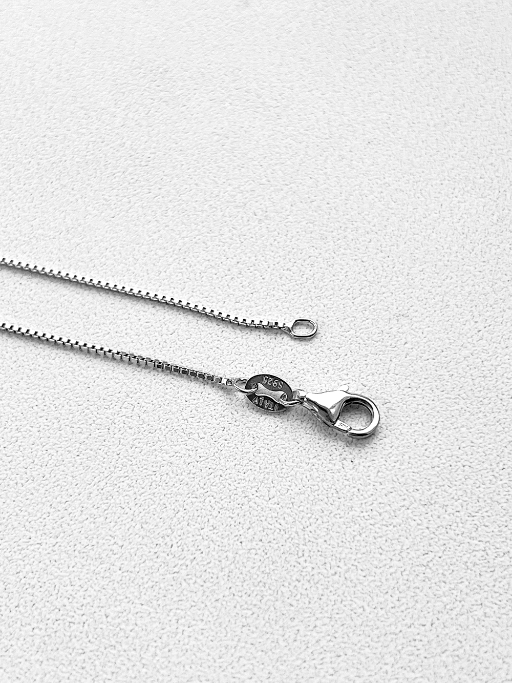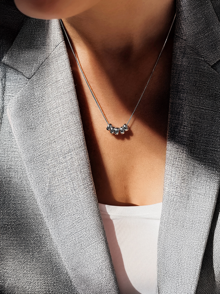 Сяюче, мінімалістичне срібне кольє з родієвим покриттям.