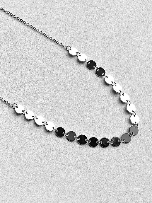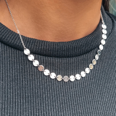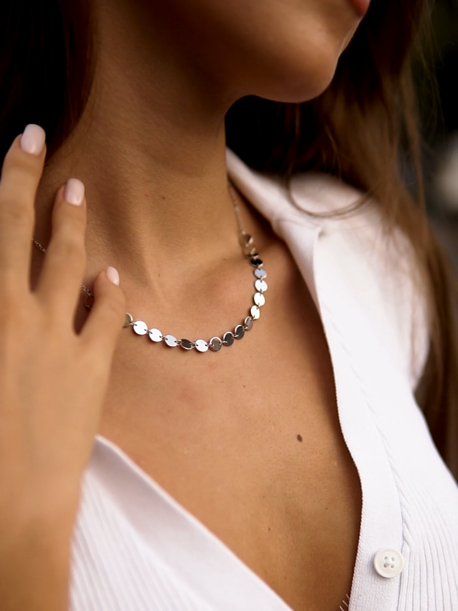Стильне срібне кольє з монетками, родієвим покриттям та регулятором розміру.