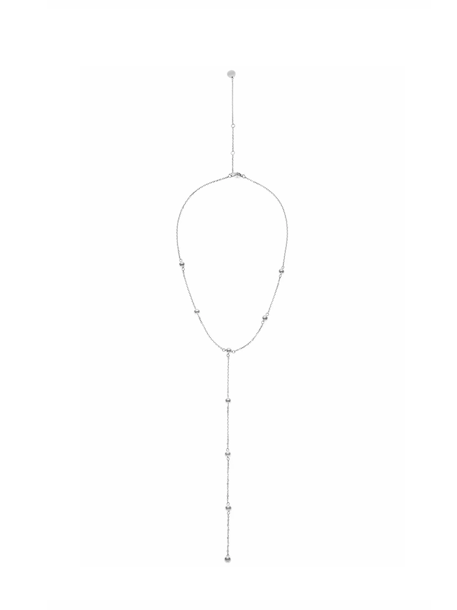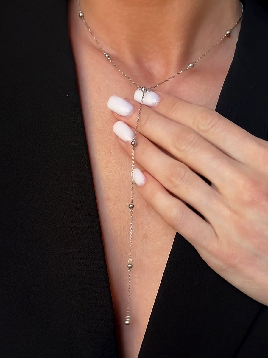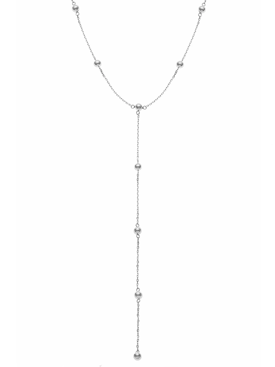 Сучасне срібне кольє з кульками яке притягує погляди. Прикрасу вкрито родієм, розмір регулюється 43+3+3+5 см.