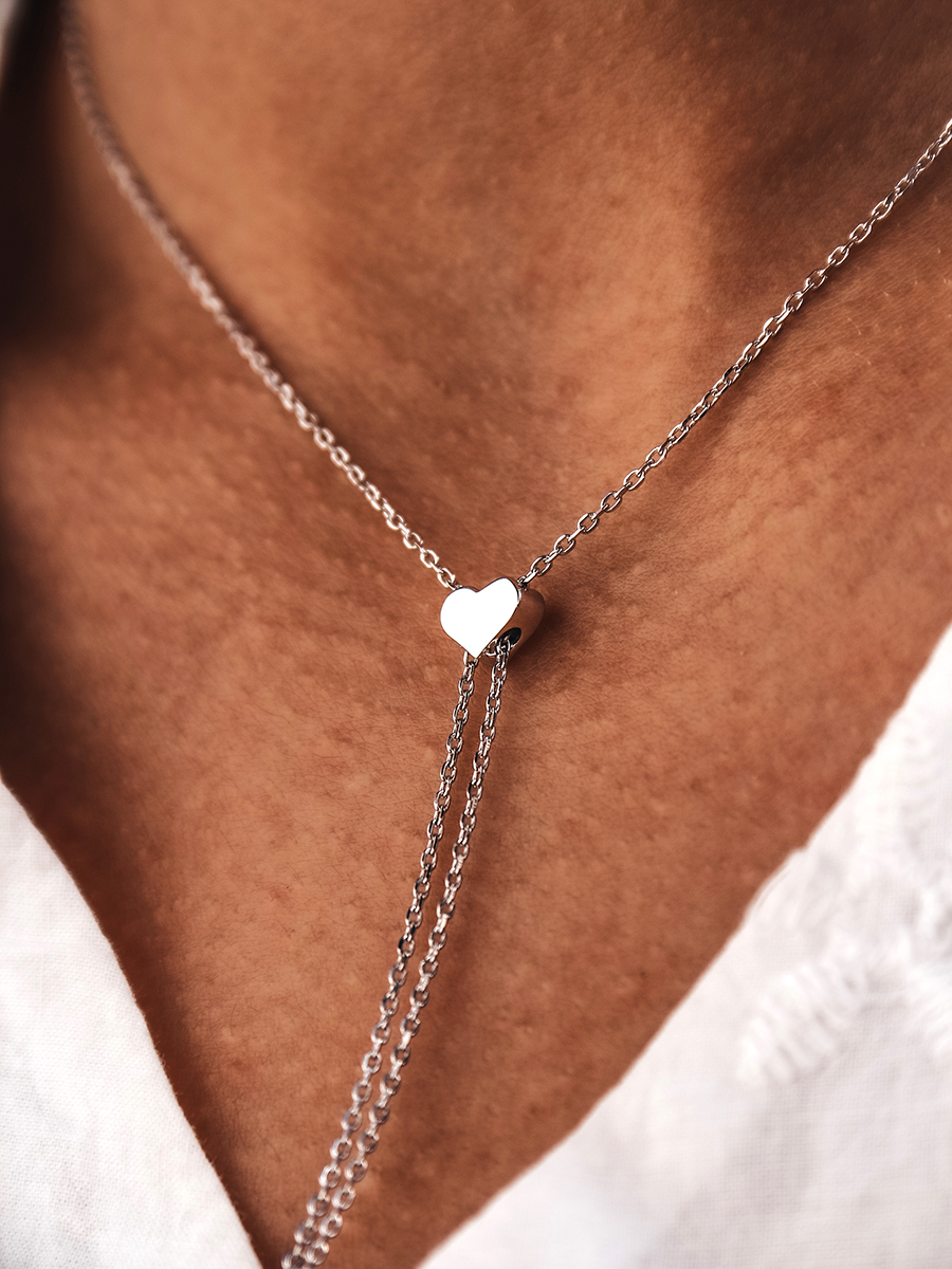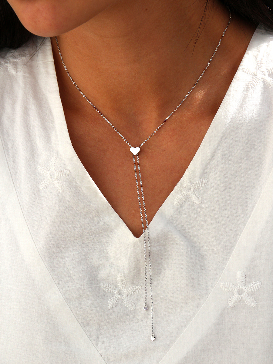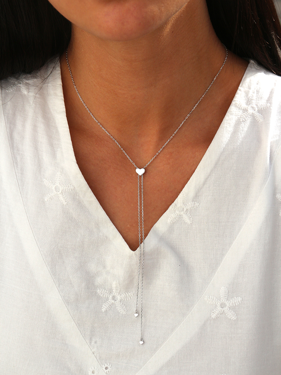 Незвичайне срібне кольє-краватка з підвісками у формі сердечок. Ніжна та стильна прикраса яка доповнить і завершить образ.