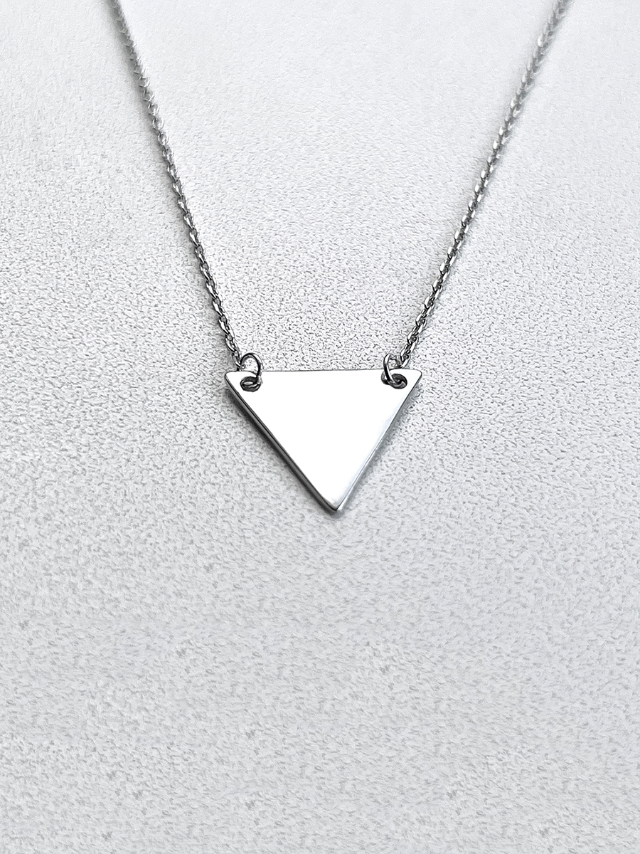 Стильне срібне кольє з геометричною підвіскою. Ланцюжок оснащено інноваційною застібкою-слайдер яка дозволяє легко регулювати довжину прикраси.