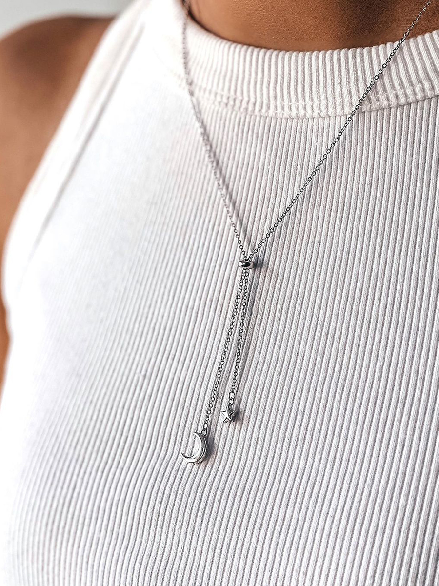 Срібне кольє з місяце та зіркою оснащено іноваційним регулятором слайдер.
