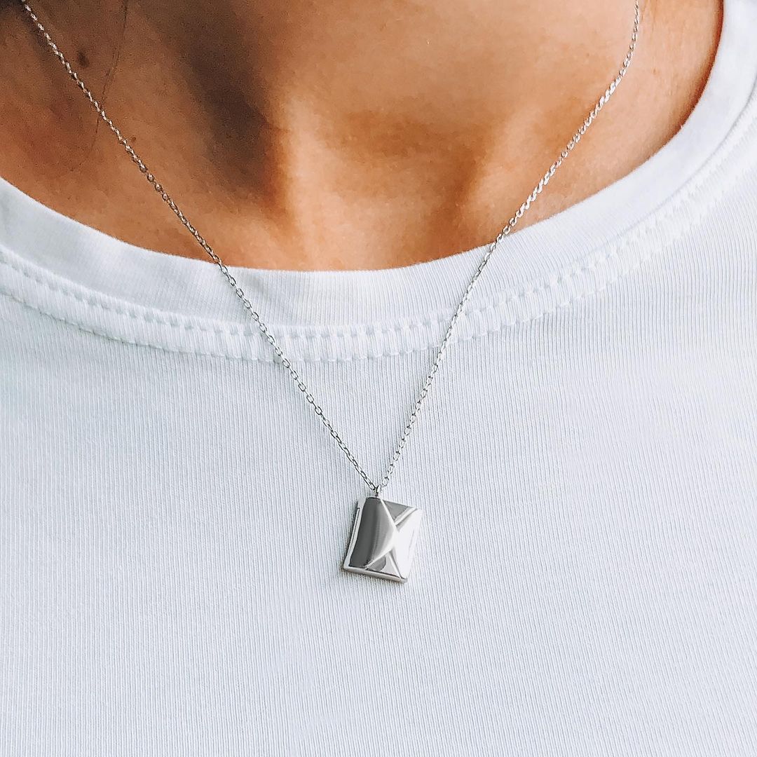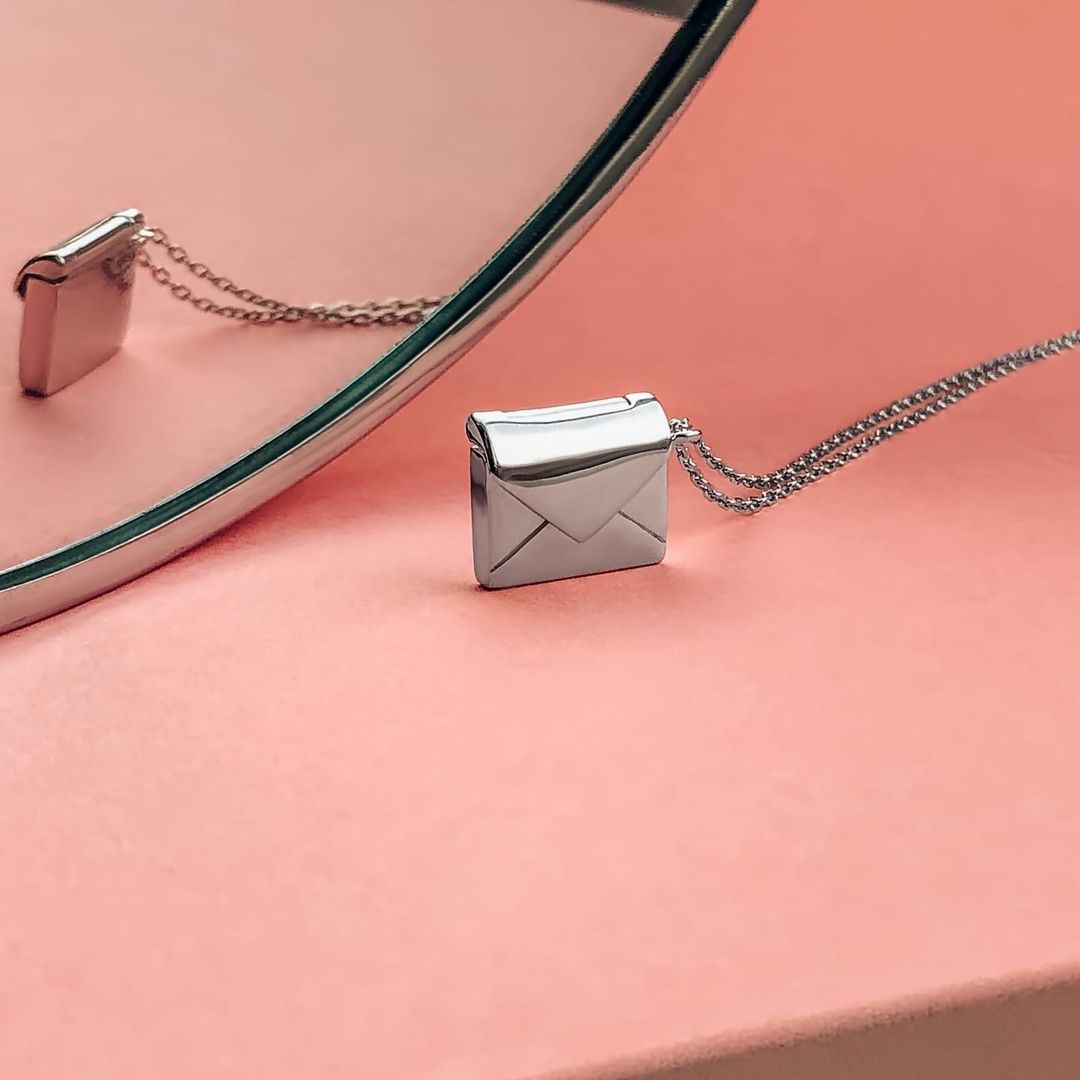 Символічне срібне кольє у вигляді конверта з листом.