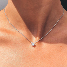 Яскраве срібне кольє із родієвим покриттям та фіанітом із діамантовим ограновуванням.
