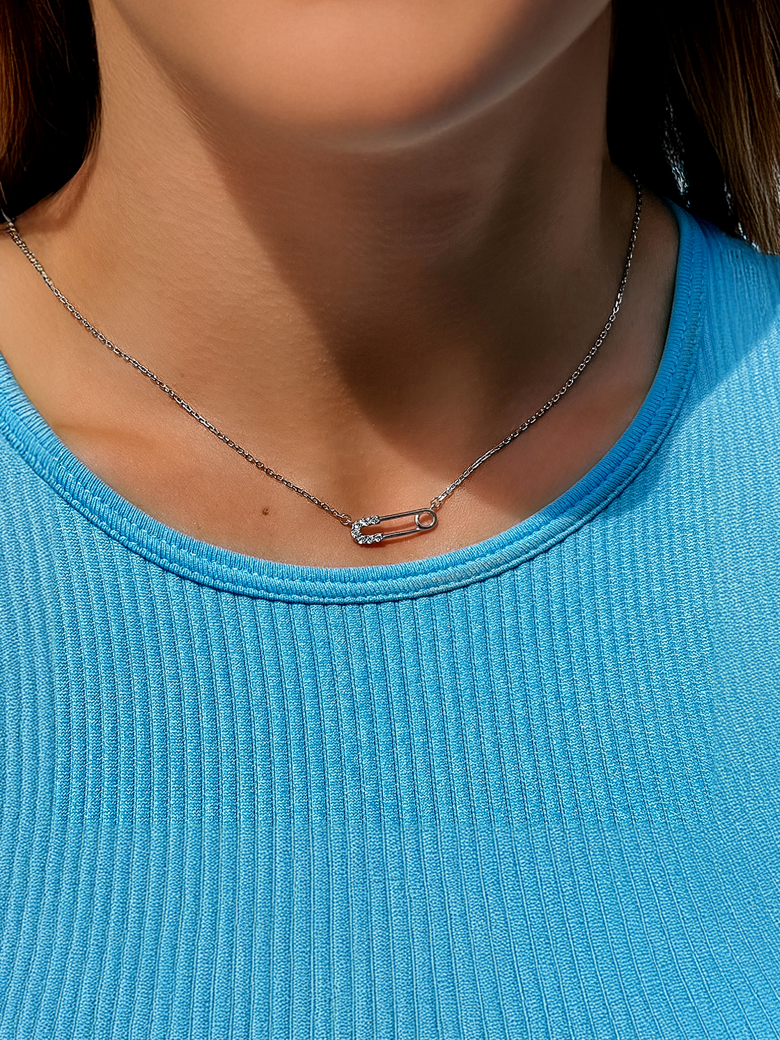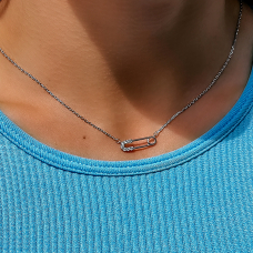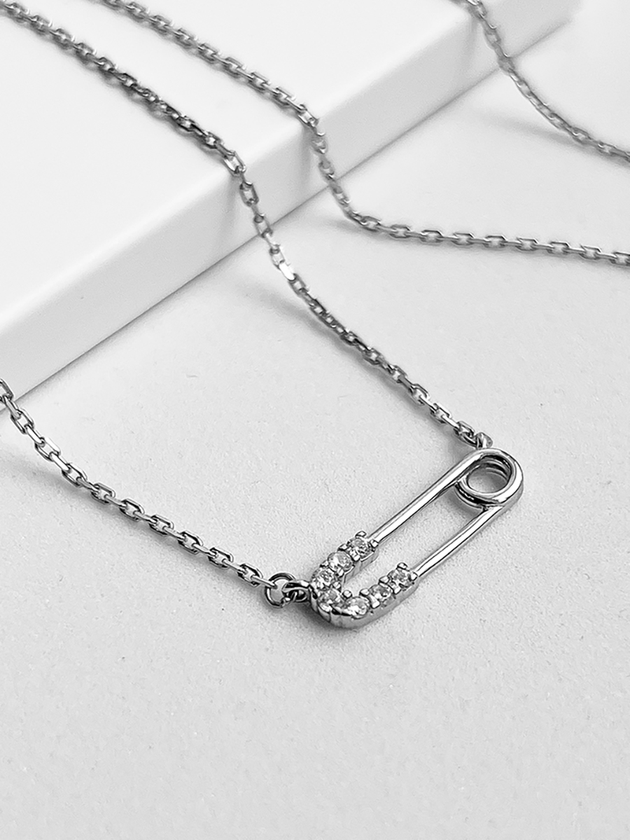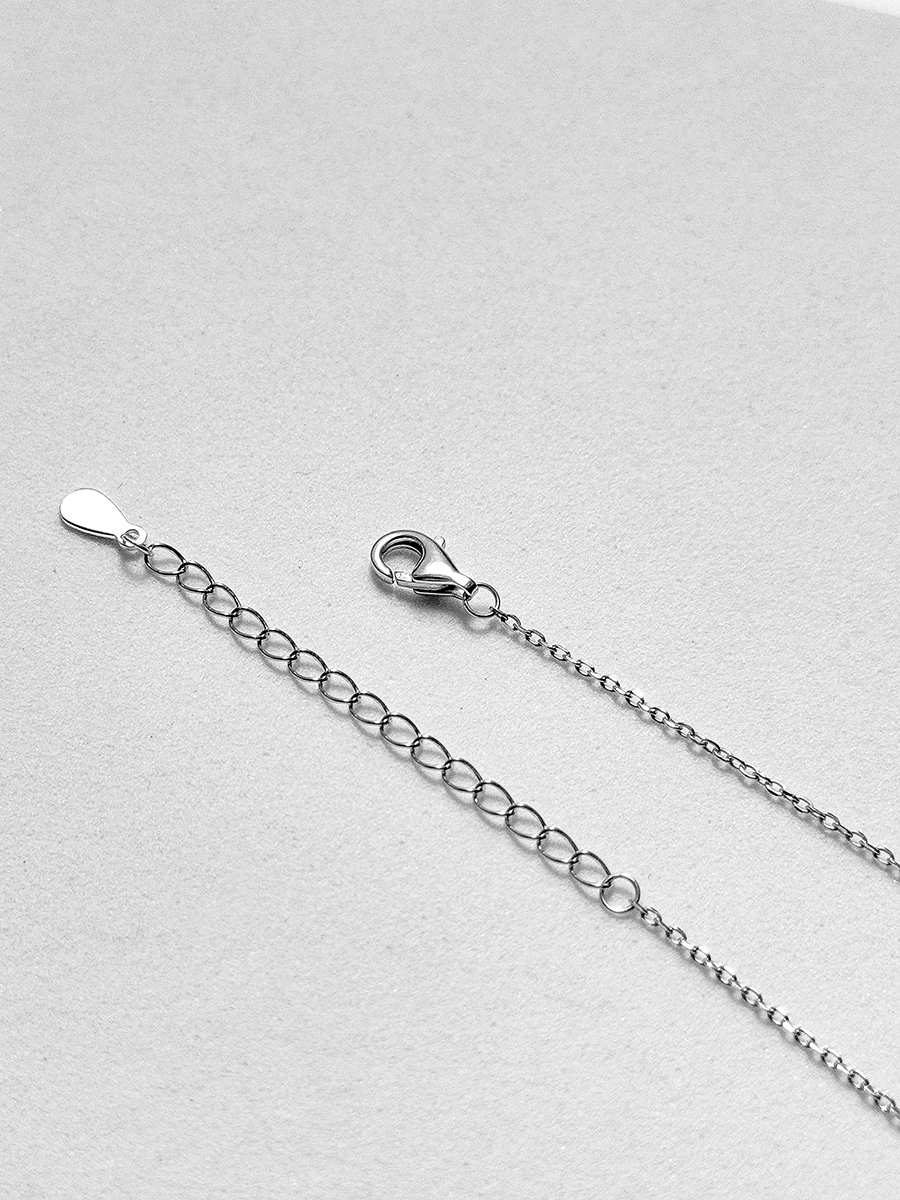 Срібне кольє із родієвим покриттям та фіанітами із діамантовим ограновуванням.