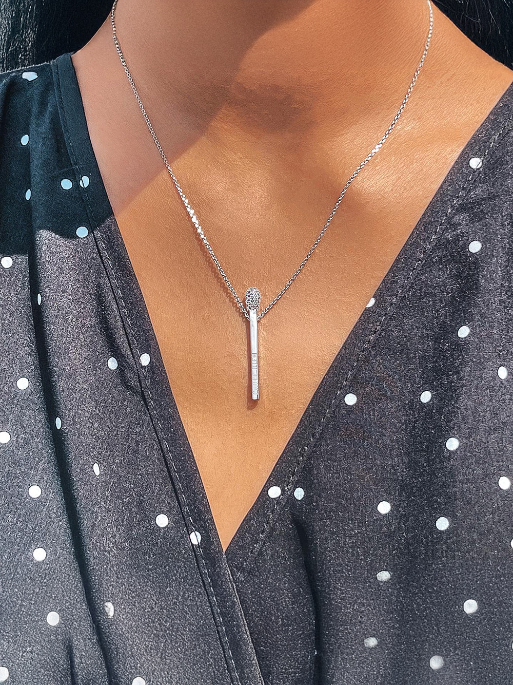 Трендове срібне кольє із сірником, вкрите родієм для максимального блиску і сяйва.