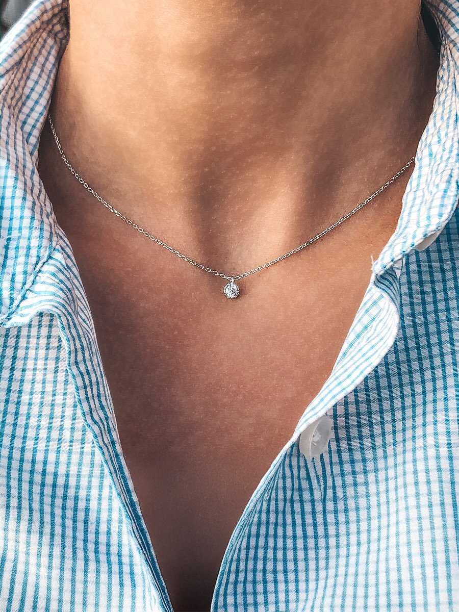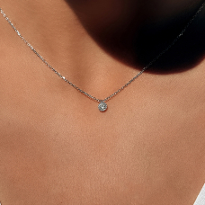 Лаконічне кольє з ніжною підвіскою. Ланцюжок оснащено інноваційною застібкою-слайдер яка дозволяє легко регулювати довжину прикраси, наприклад, зменшити до 30 см. і навіть менше, або збільшити до 45 см..