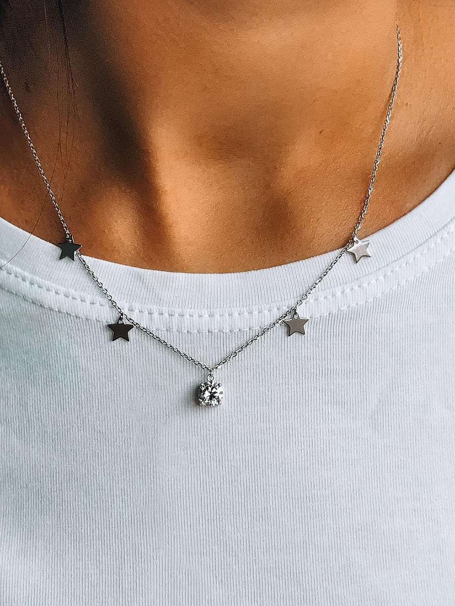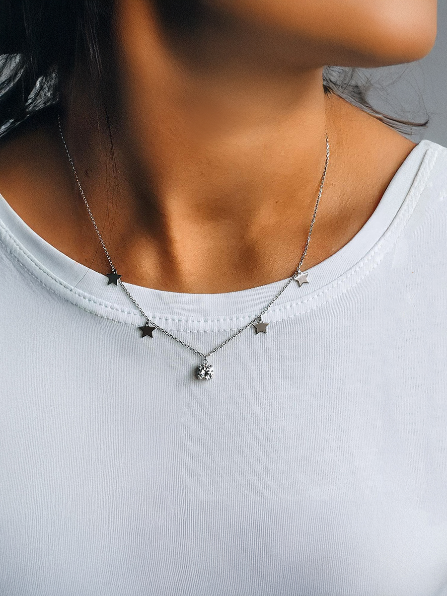 Срібне кольє з зірочками та фіанітом. Оснащено регулятором розміру.