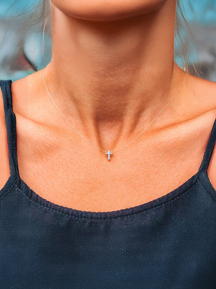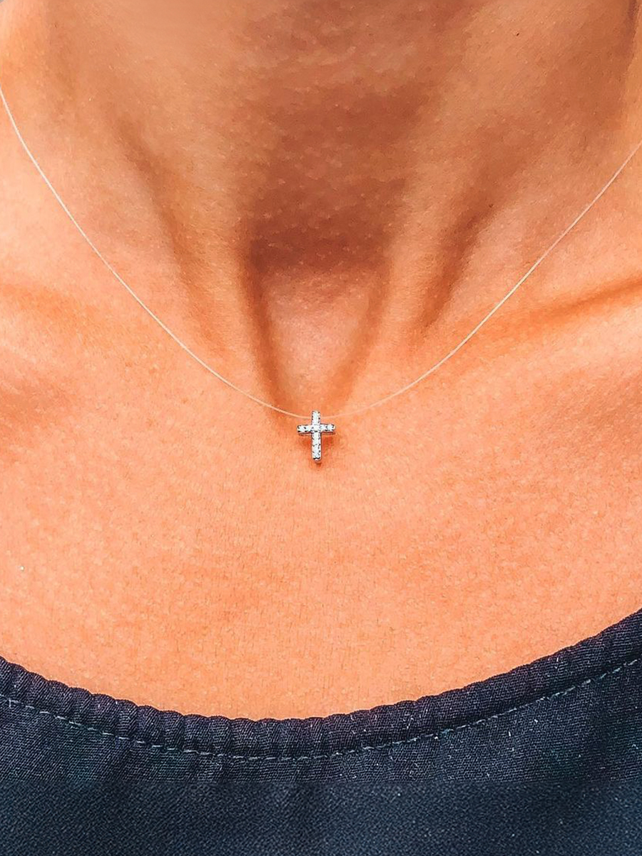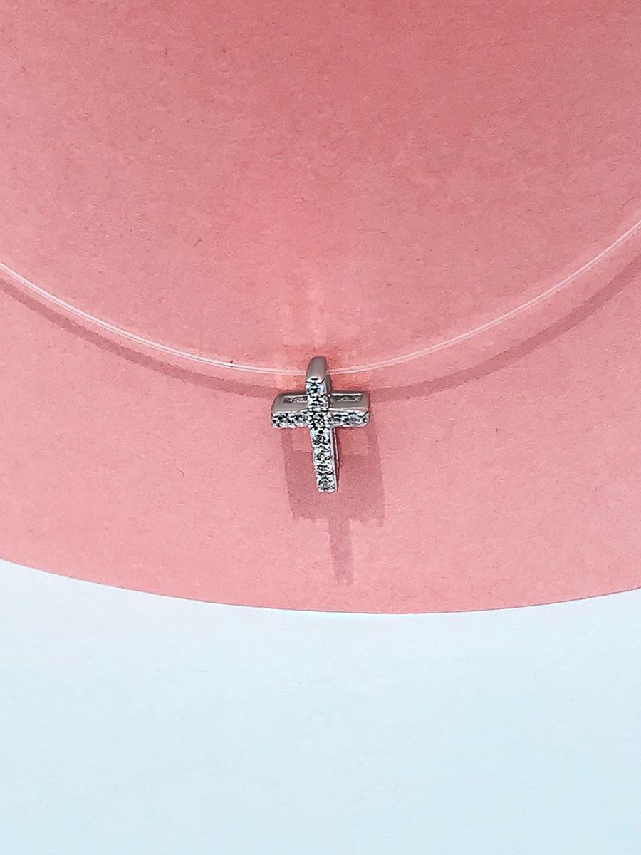 Стильний двосторонній хрестик на прозорій жилці. Розмір регулюється.