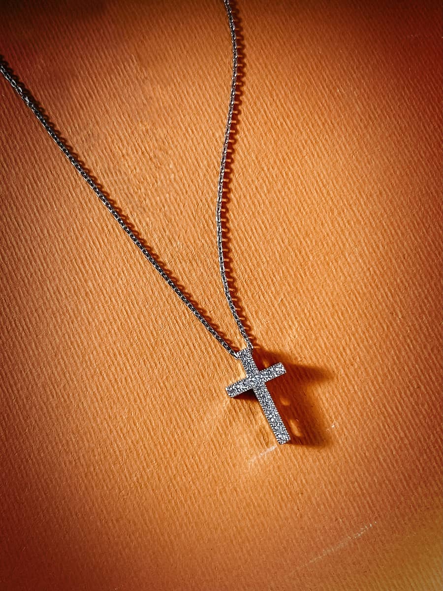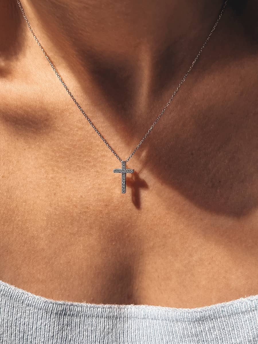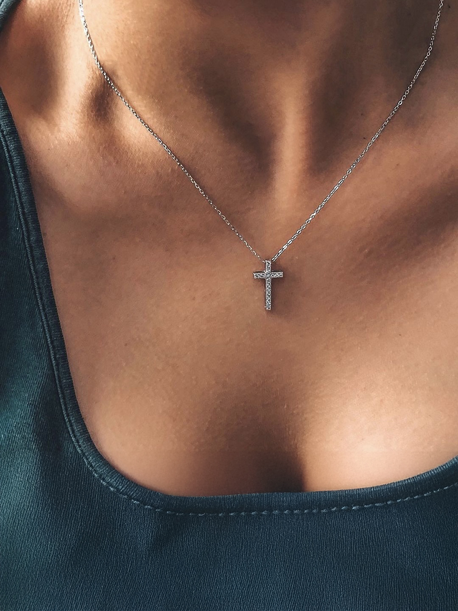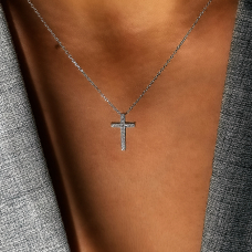 Срібне кольє з хрестиком із фіанітами, який чудово комбінується в сети та достатній як самостійна прикраса. Ланцюжок оснащено інноваційною застібкою-слайдер яка дозволяє легко регулювати довжину прикраси.