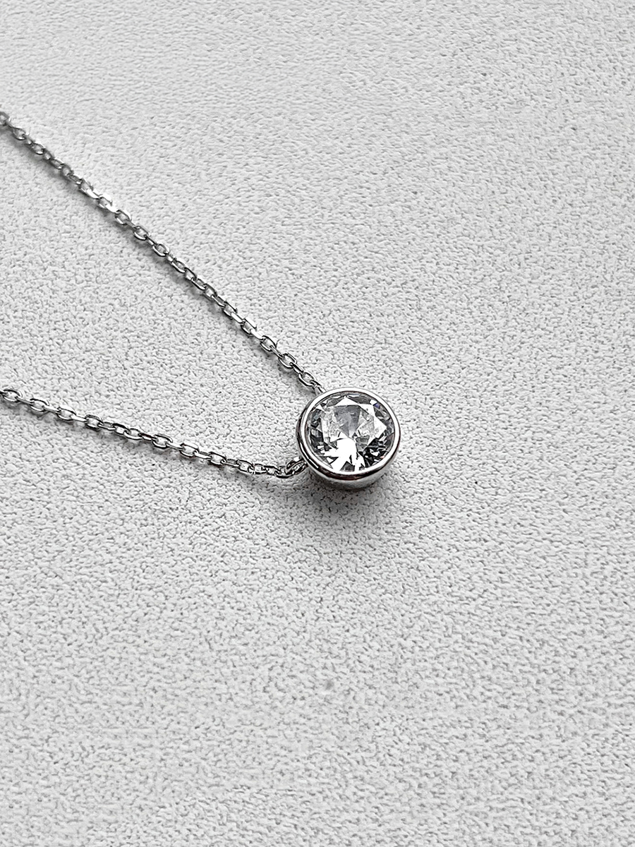 Срібне кольє у класичому виконанні з сліпучим фіанітом та зручною регульованою застібкою-слайдер.
