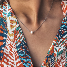Лаконічне срібне кольє з натуральною прісноводною перлинкою. Ланцюжок оснащено інноваційною застібкою-слайдер яка дозволяє легко регулювати довжину прикраси.