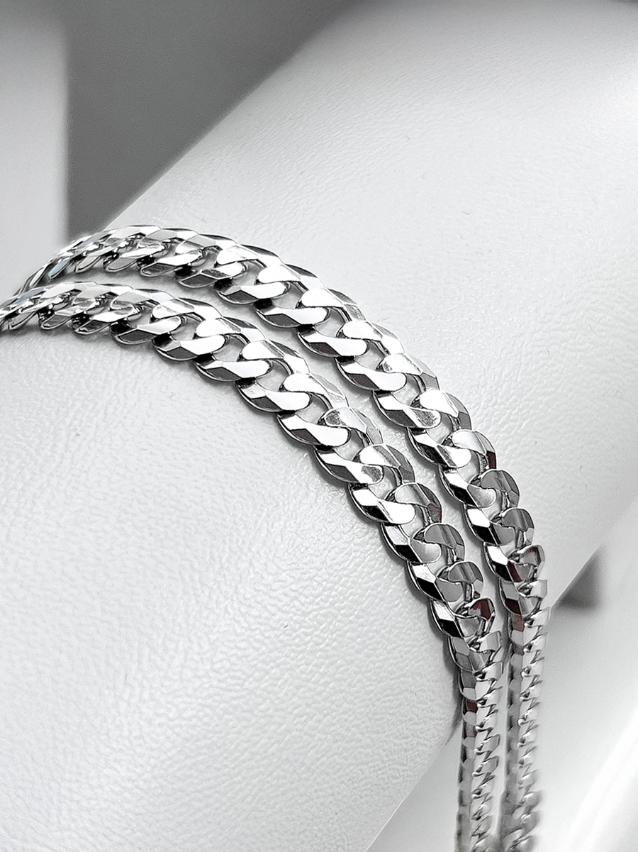 Універсальний срібний ланцюжок преміальної якості для чоловіків і жінок, з алмазним огранюванням, яке надає йому неперевершеного сяйва та блиску. Довершений вручну, цей ланцюжок вирізняється своєю міцністю та бездоганною якістю.