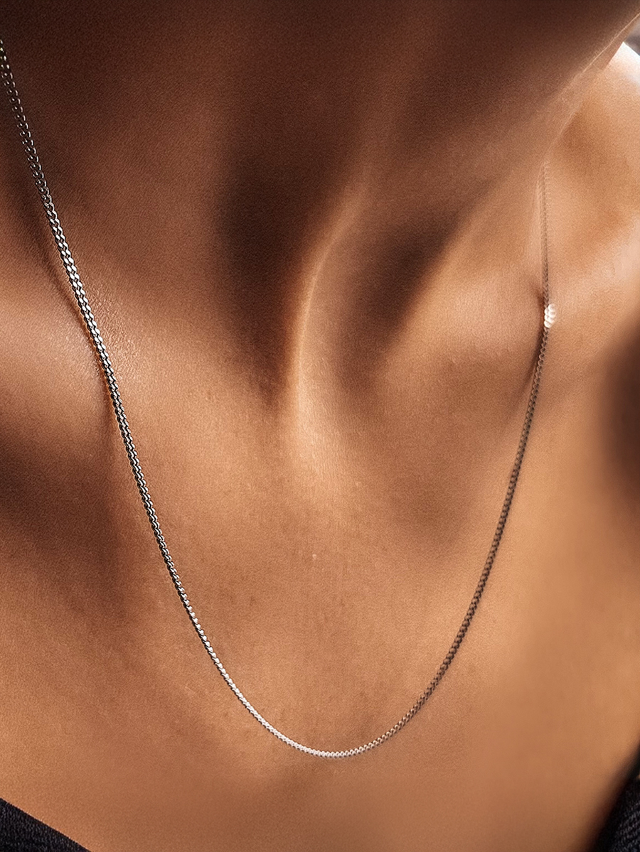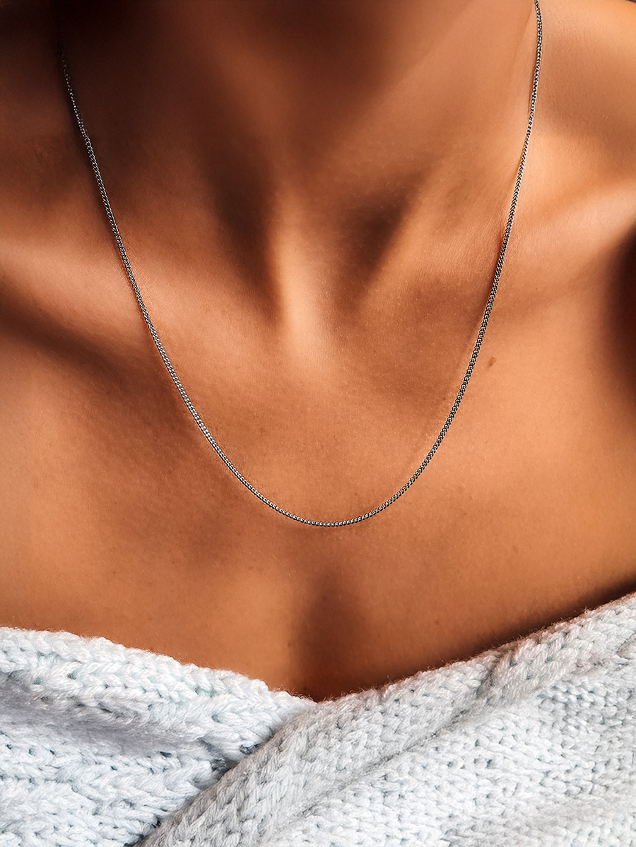 Ніжний срібний ланцюжок 925-ї проби панцирного плетіння з шпрингельною застібкою.