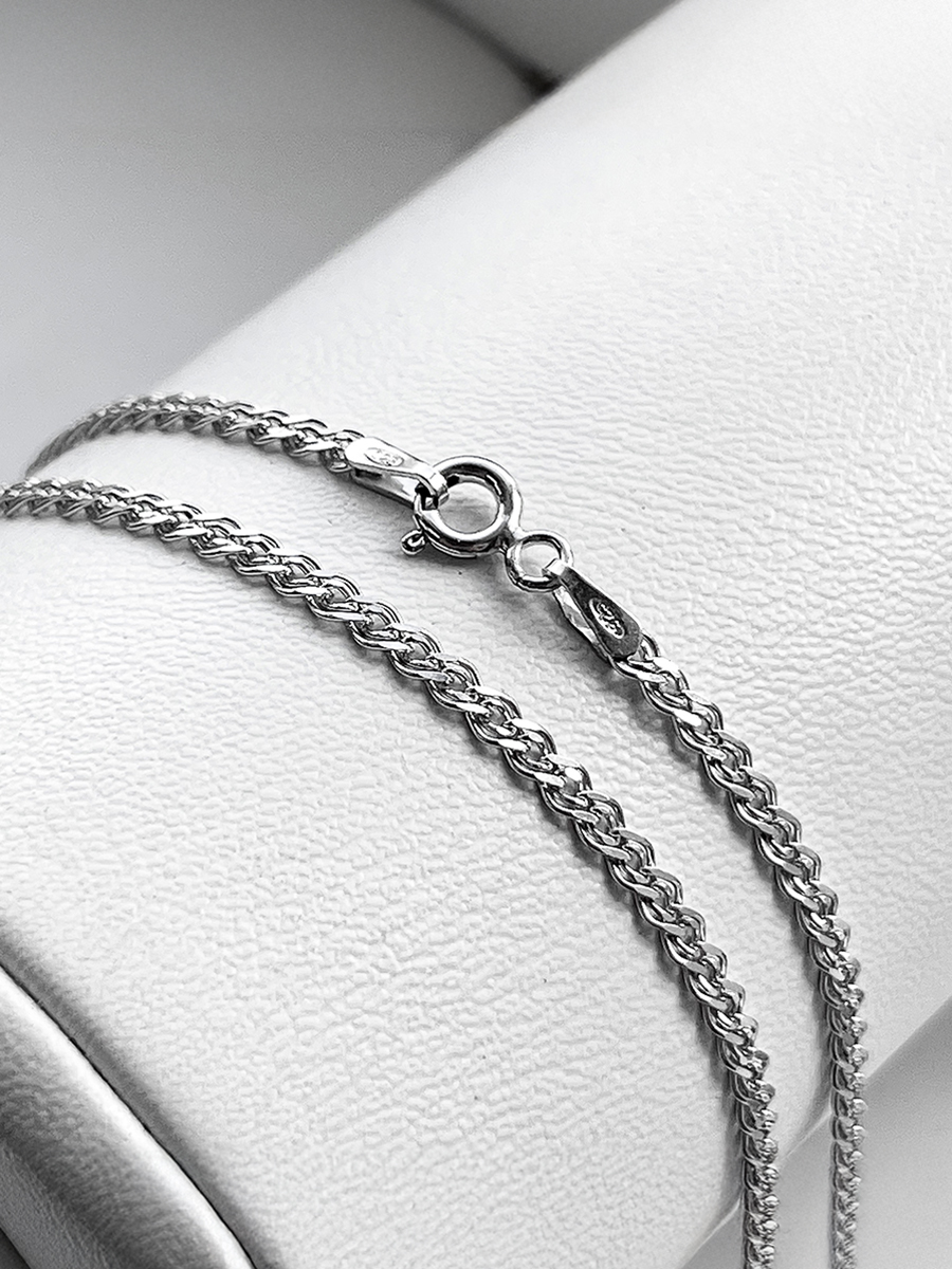 Срібний ланцюжок 925-ї проби з родієвим покриттям та алмазним огранюванням, що надає йому неперевершеного сяйва і блиску. Плетіння Нонна (Мона Ліза) – класичний стиль, який не має гендерних обмежень і підходить як чоловікам, так і жінкам.
