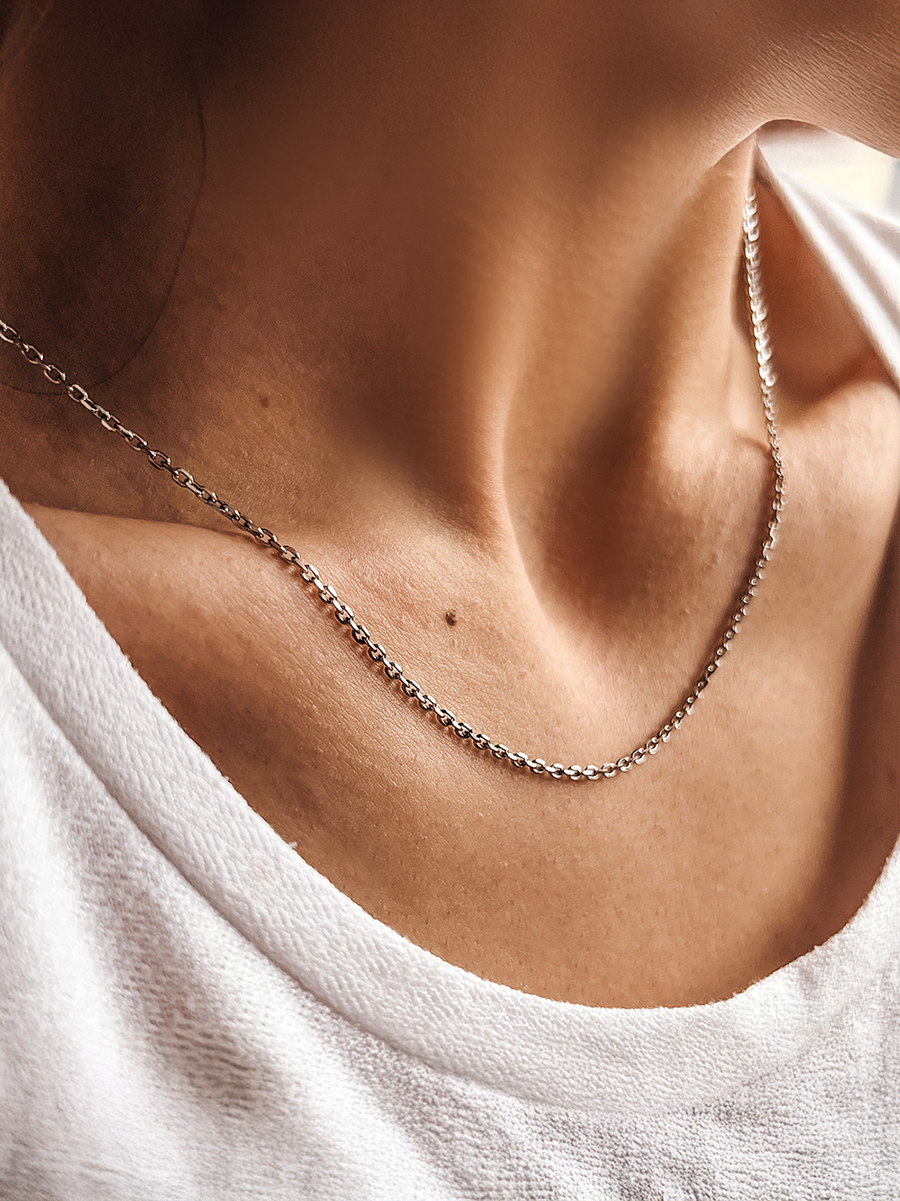 Срібний ланцюжок 925-ї проби, якірного плетіння з алмазними граннями.