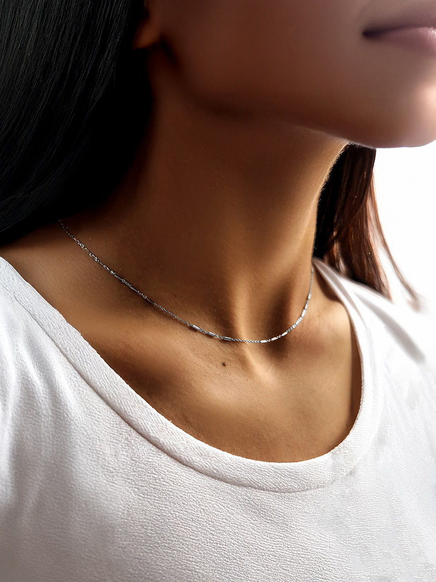 Ніжний срібний ланцюжок 925-ї проби та 3-шаровоим покриттям родію. Носіть як самостійну прикрасу або поєднуйте в незвчайні комбінації з іншими ланцюжками і кольє.
