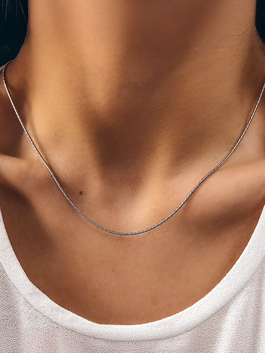 - Класичні срібні ланцюжки — це прості, бездоганно гладкі ланцюжки, які відрізняються товщиною та довжиною. Вони підходять для будь-якого випадку: від повсякденного одягу до офіційних заходів.