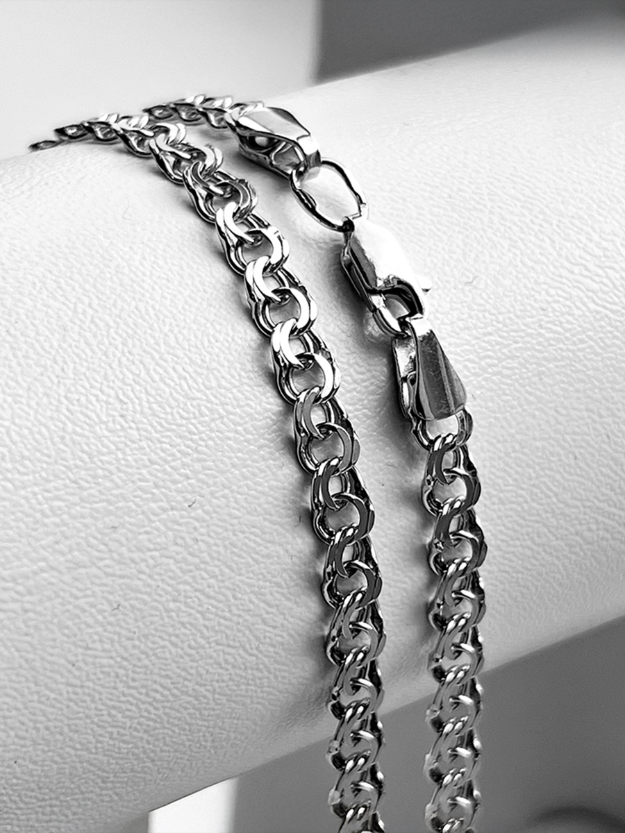 - Матеріал. Ланцюжки постійно контактують зі шкірою, тому для тривалого користування потрібен якісний метал. Ми пропонуємо виключно якісне срібло 925 проби.