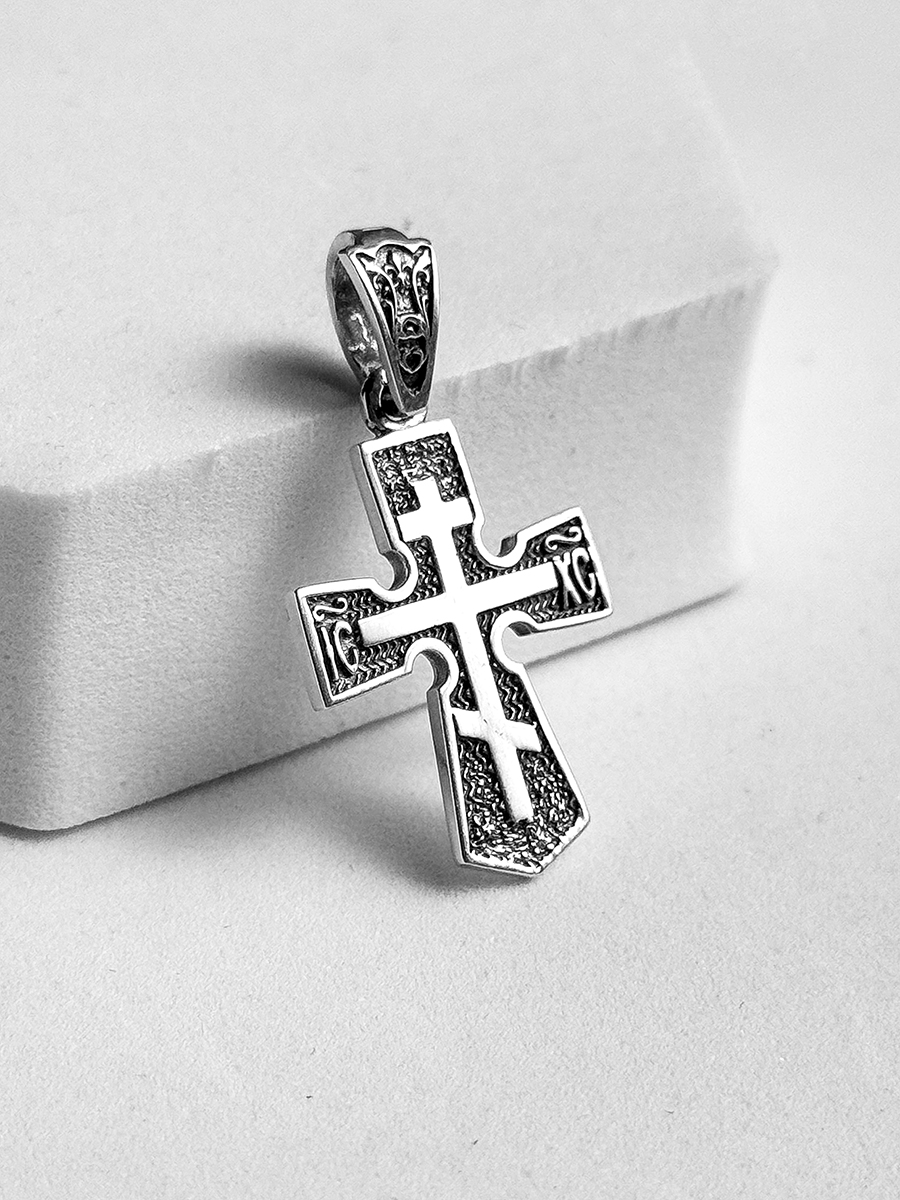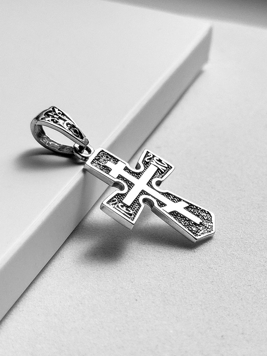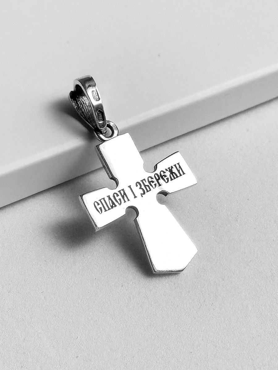 Релігійний срібний хрестик. Розмір без вушка 18х29 мм.