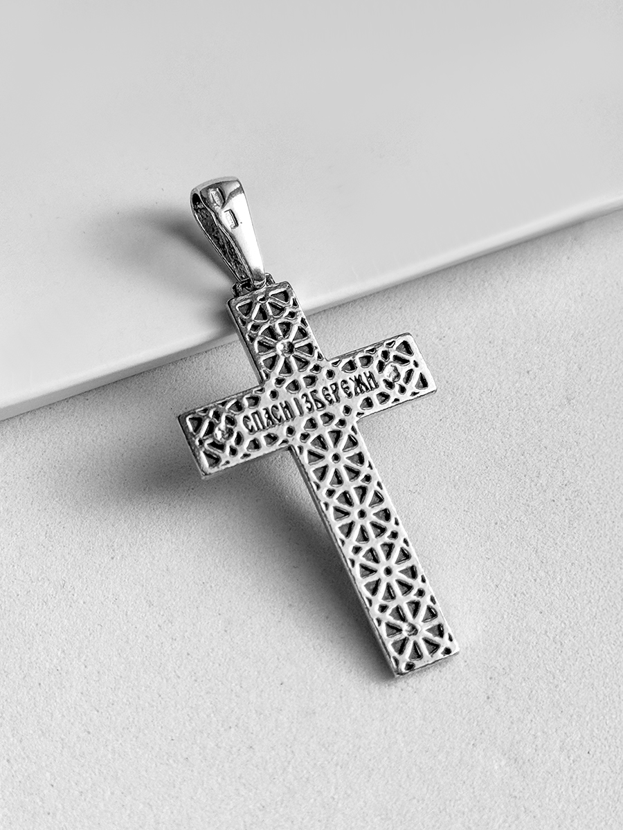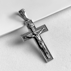 Релігійний срібний хрестик. Розмір без вушка 25х40 мм.