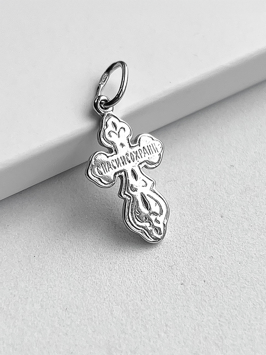 Срібний хрестик із родієвим покриттям.Розмір вказаний без вушка.