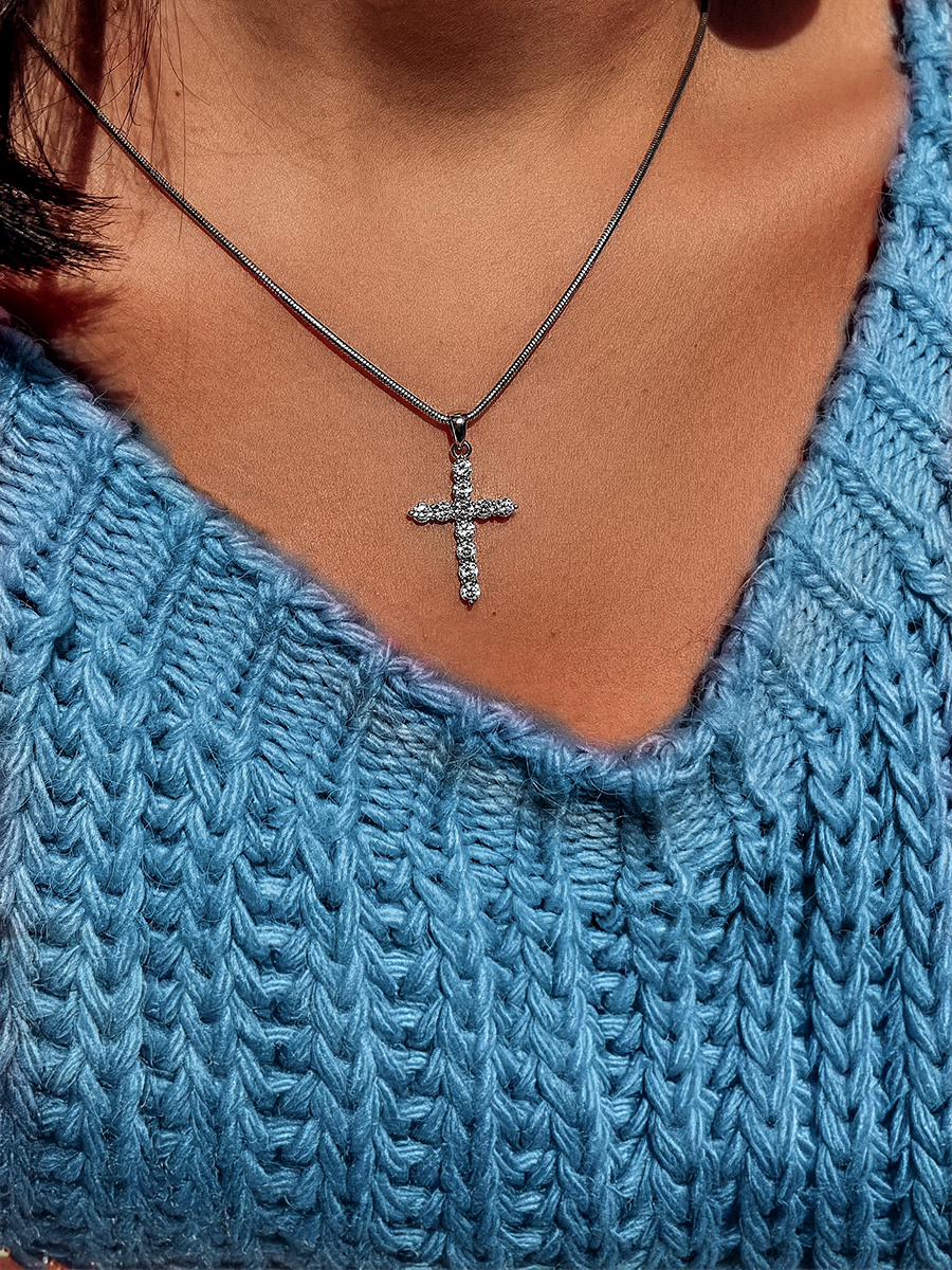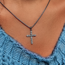 Срібний хрестик із родієвим покриттям та яскравими фіанітами із діамантовим ограновуванням (АААА)