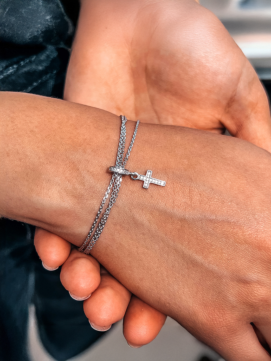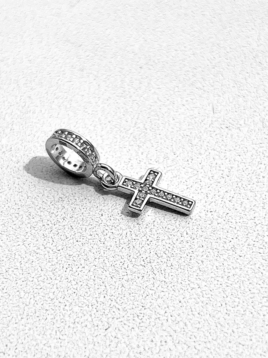 Срібна підвіска для ланцюжків і браслетів із родієвим покриттям та фіанітами із діамантовим ограновуванням.