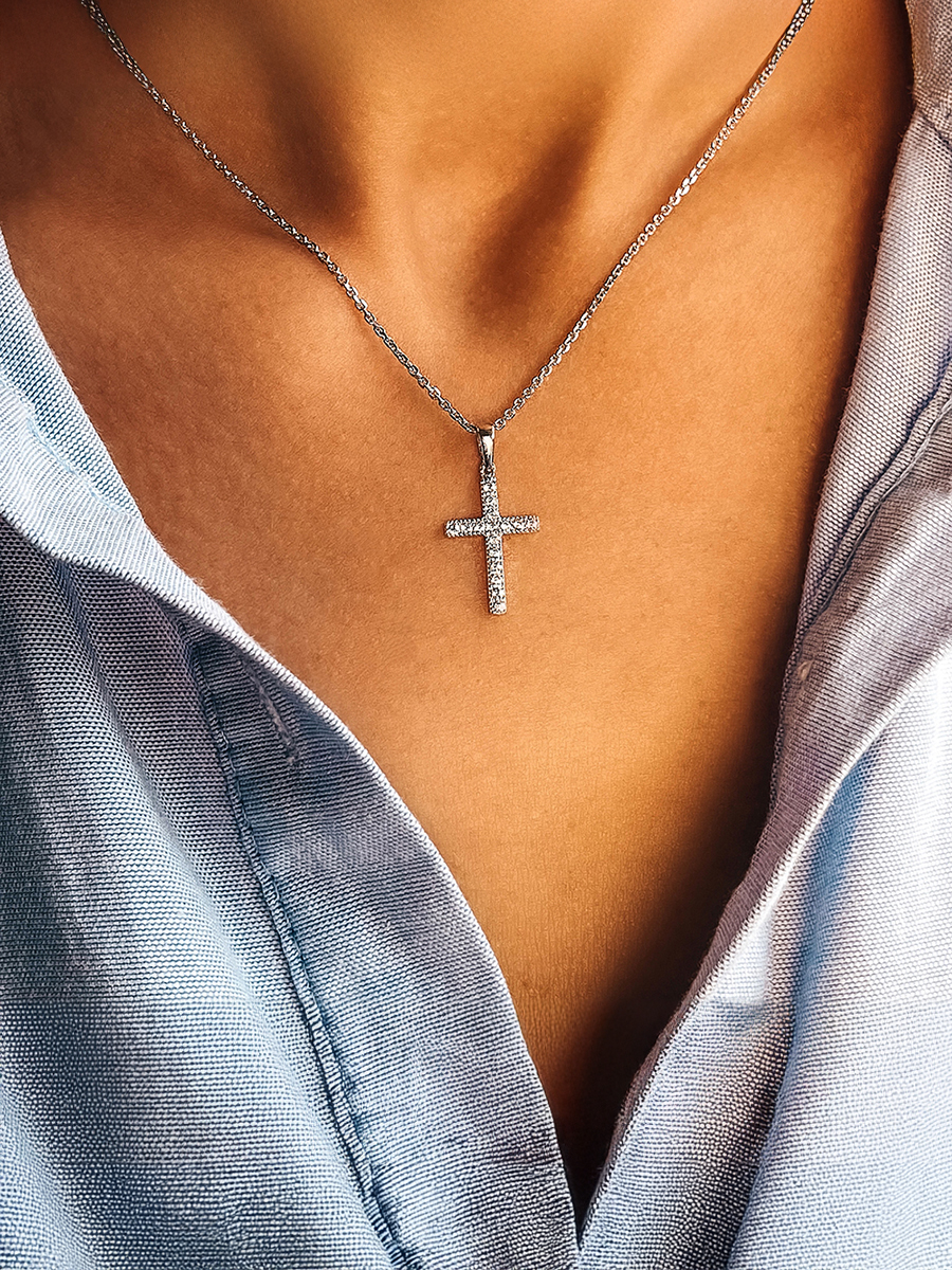 Срібна підвіска для ланцюжків і браслетів із родієвим покриттям та фіанітами із діамантовим ограновуванням.