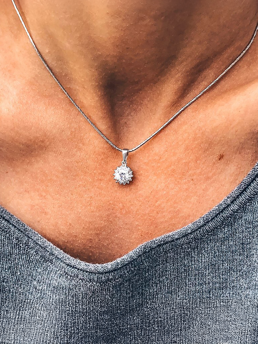 Срібна підвіска для ланцюжків і браслетів із родієвим покриттям та фіанітами із діамантовим ограновуванням.