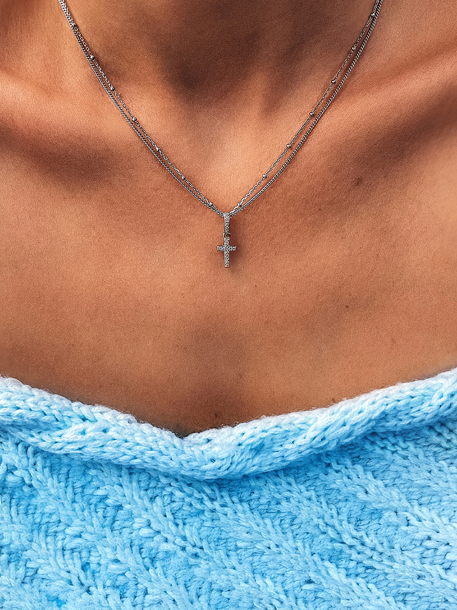 Срібна підвіска для ланцюжків і браслетів із родієвим покриттям та фіанітами із діамантовим ограновуванням.