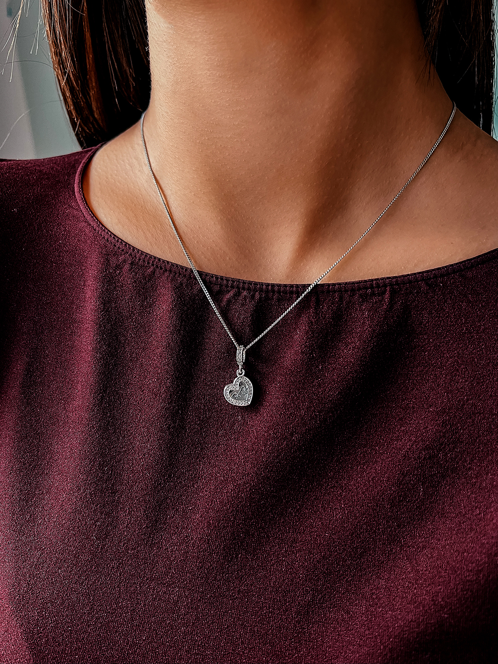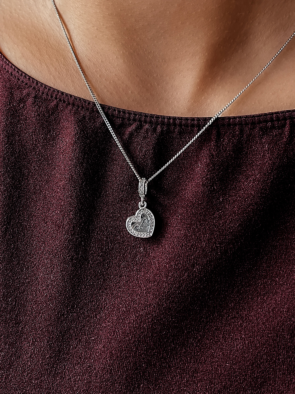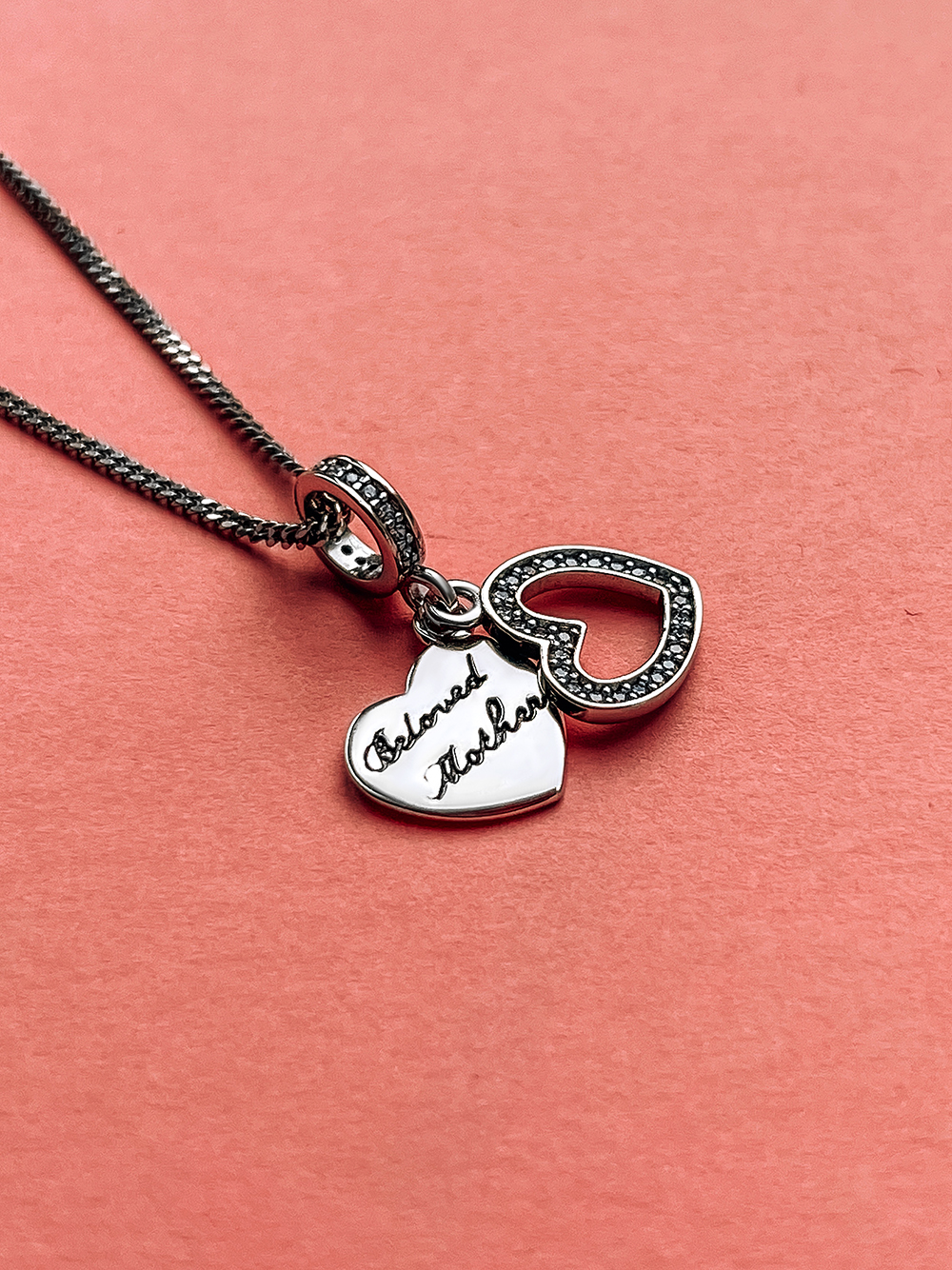 Срібна підвіска з подвійним сердечком та символічним гравіюванням ""Beloved Mother"" (Кохана Мама). Підвіску можна носити як на ланцюжках, так і на браслетах.