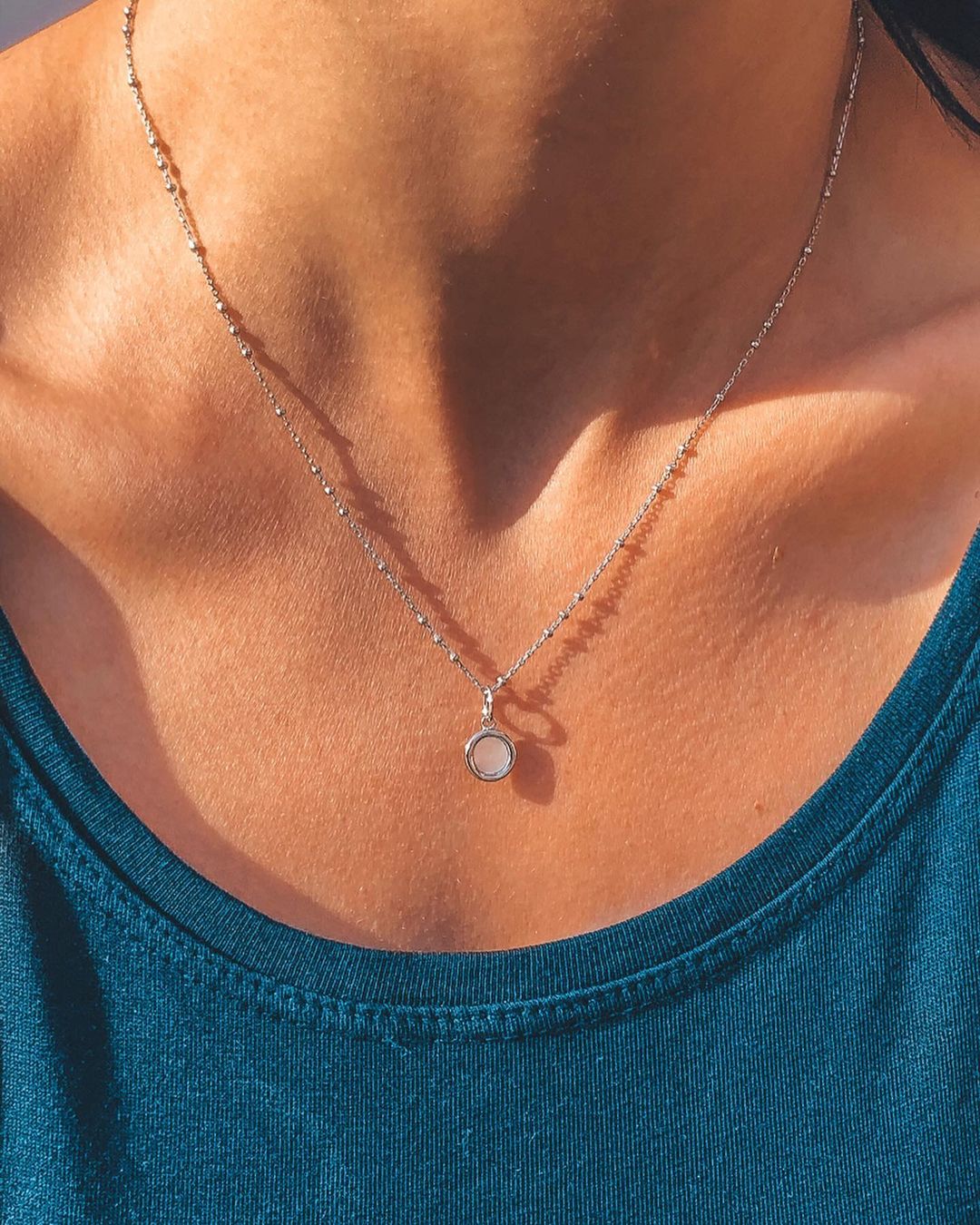Срібна підвіска для ланцюжків і браслетів із родієвим покриттям та перламутром.