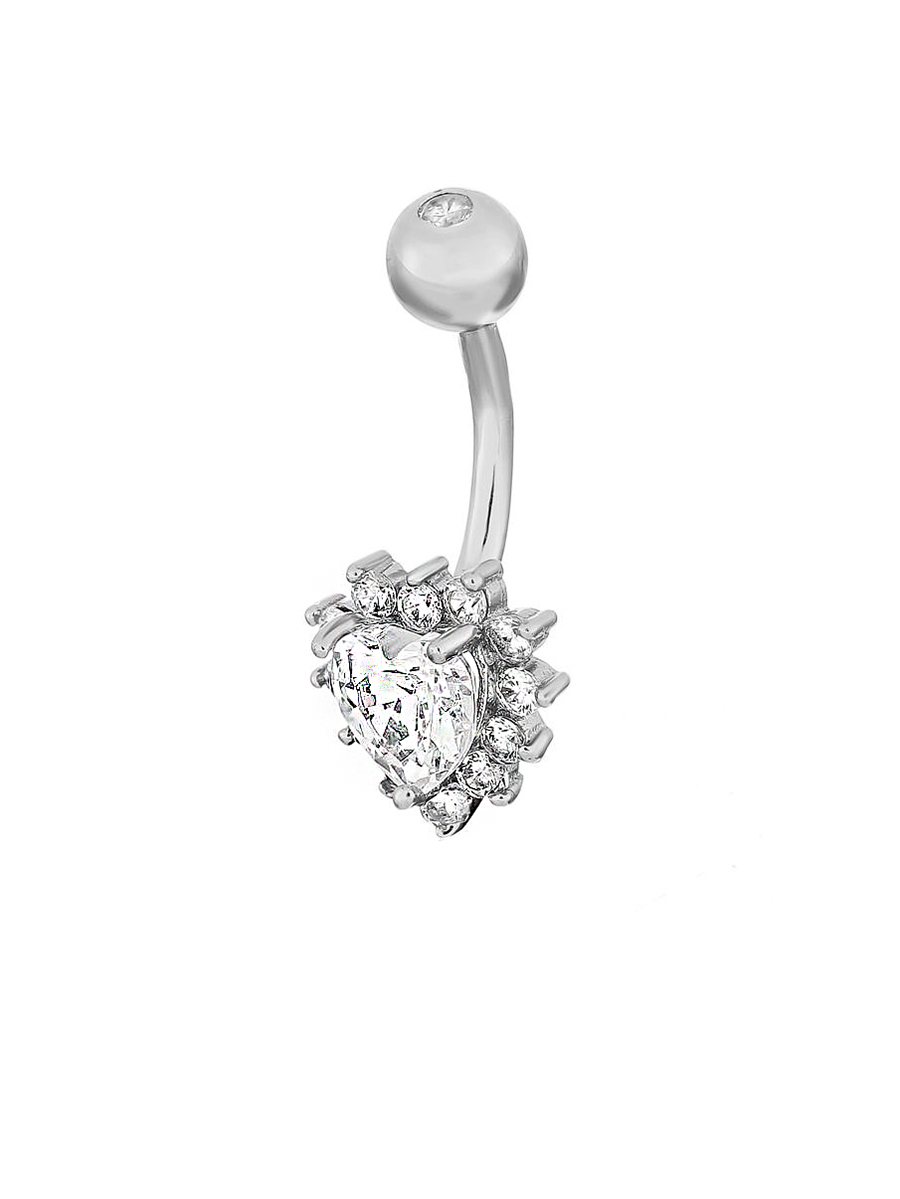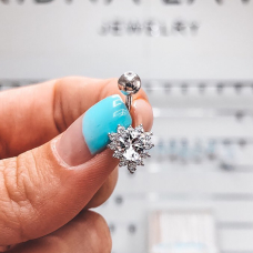Срібна сережка для пірсингу із родієвим покриттям та фіанітами із діамантовим ограновуваням.