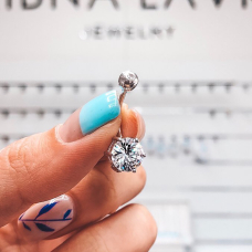 Срібна сережка для пірсингу із родієвим покриттям та фіанітами із діамантовим ограновуваням.