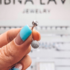 Срібна сережка для пірсингу із родієвим покриттям та фіанітами із діамантовим ограновуваням.