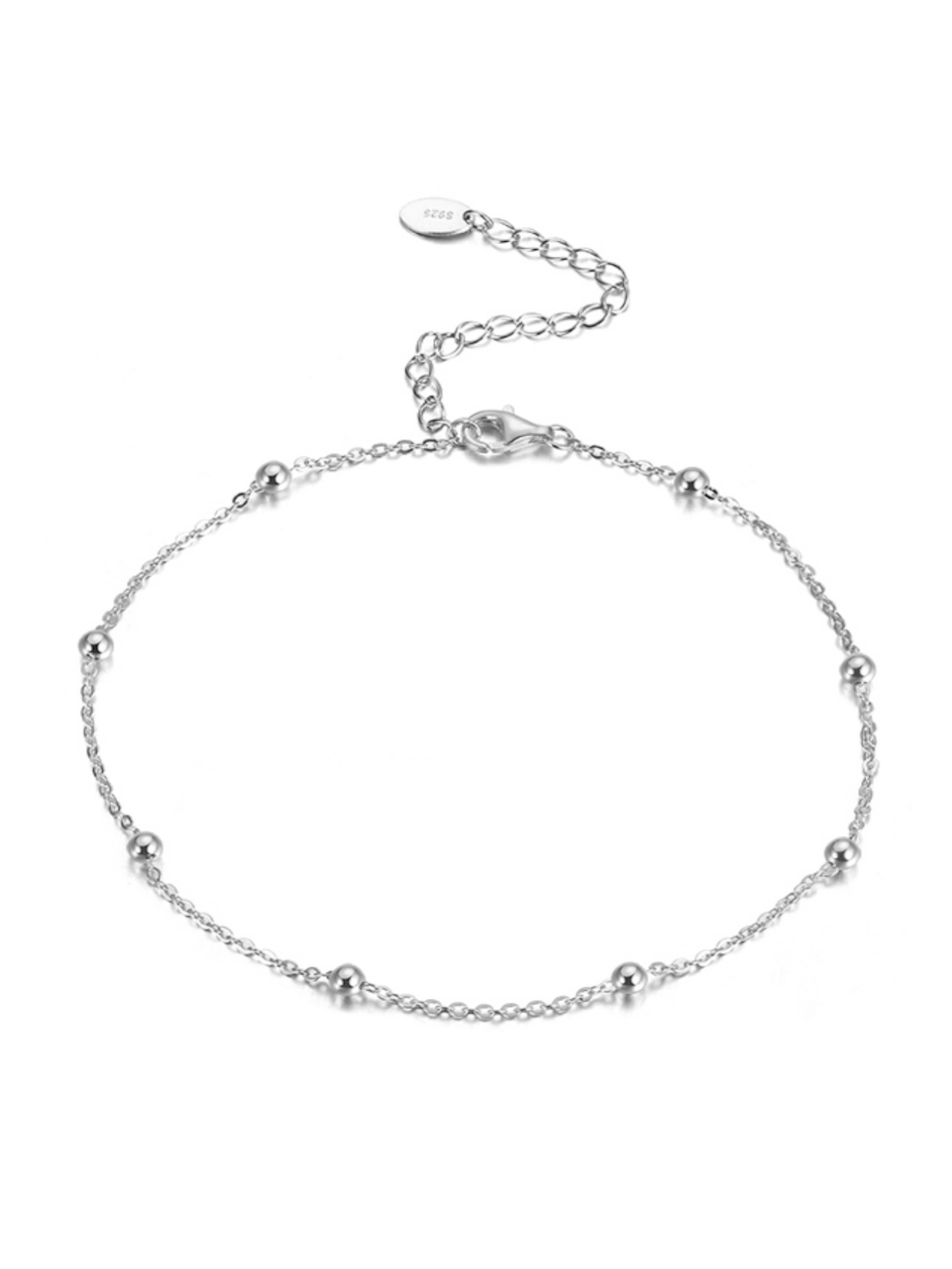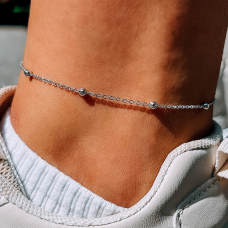 Lakoniczna bransoletka na nodze z powłoką rodu i wygodną regulacją rozmiaru.