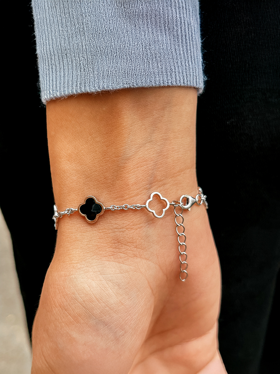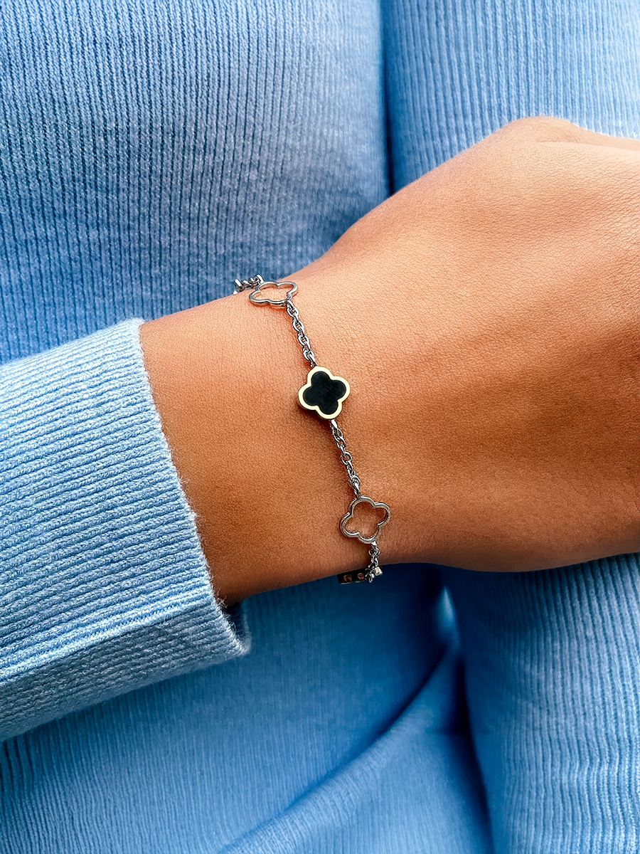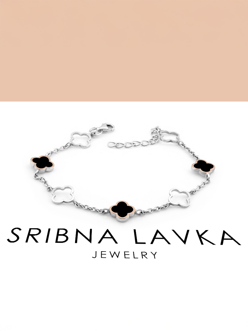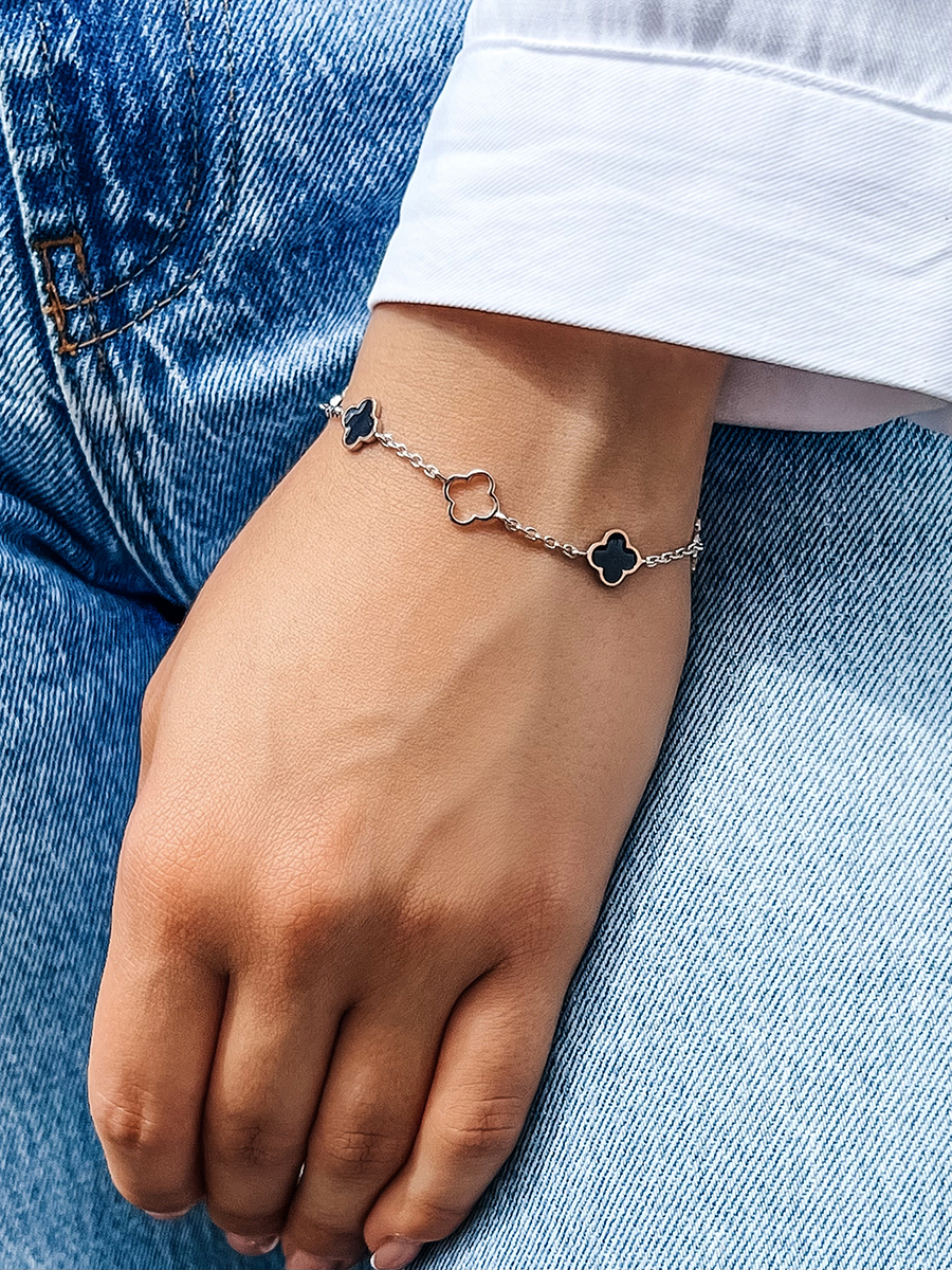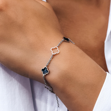 Srebrna bransoletka z emalią i wstawkami z naturalnego złota. Ozdoba wyposażona jest w regulator rozmiaru.