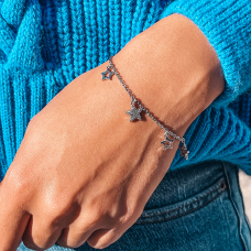 Efektowna srebrna bransoletka z zawieszkami.