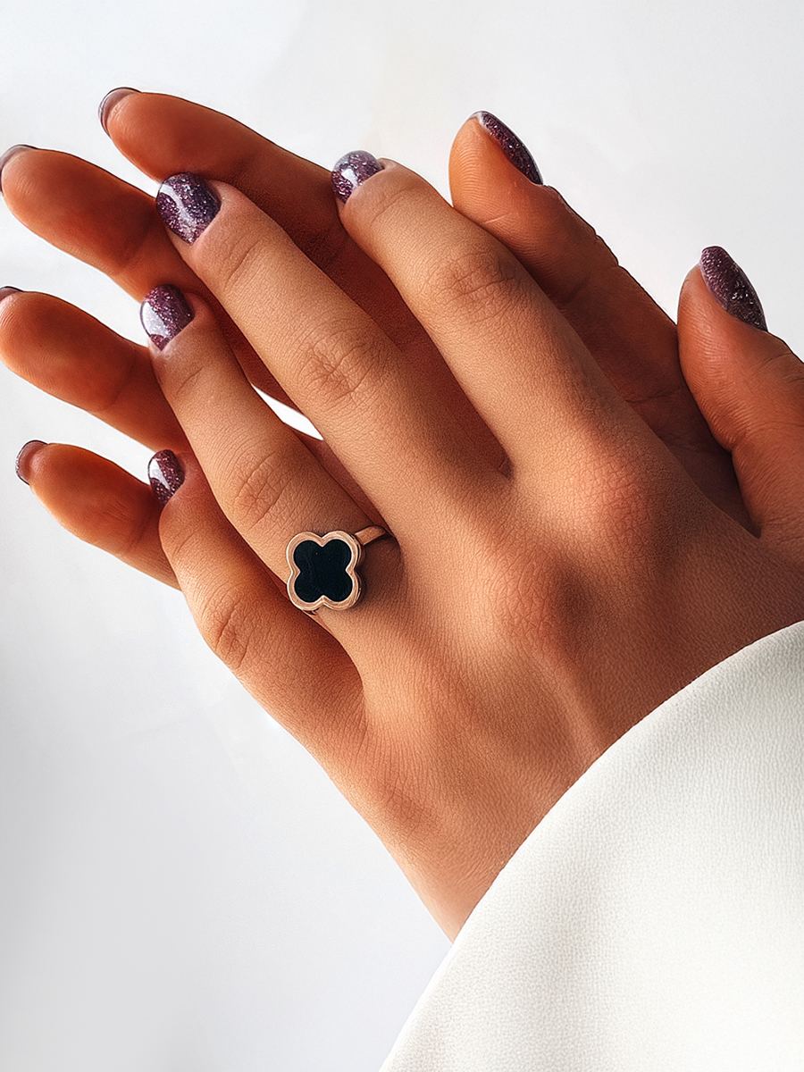 Stylowy i niepowtarzalny srebrny pierścionek, ozdobiony wstawkami z naturalnego złota, cyrkoniami sześciennymi o szlifie diamentowym i emalią.