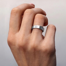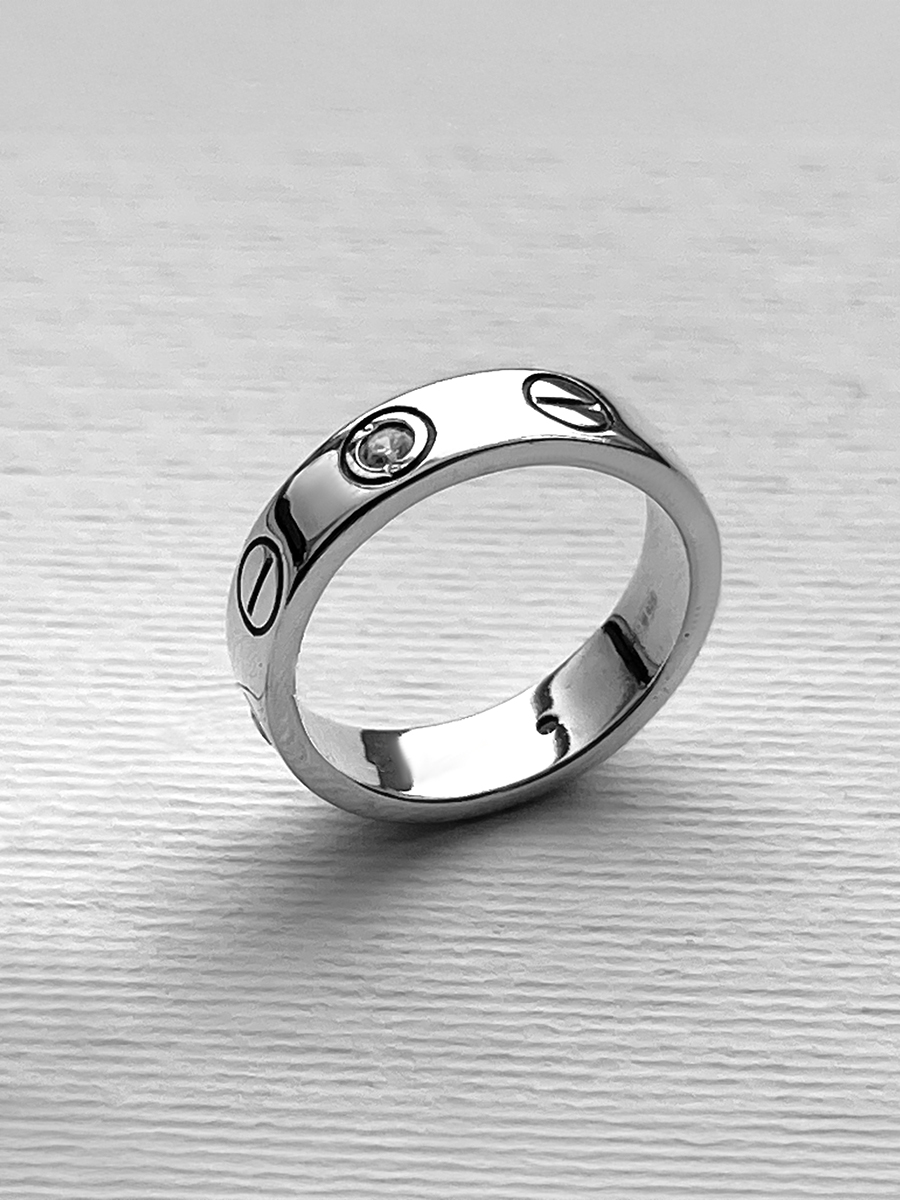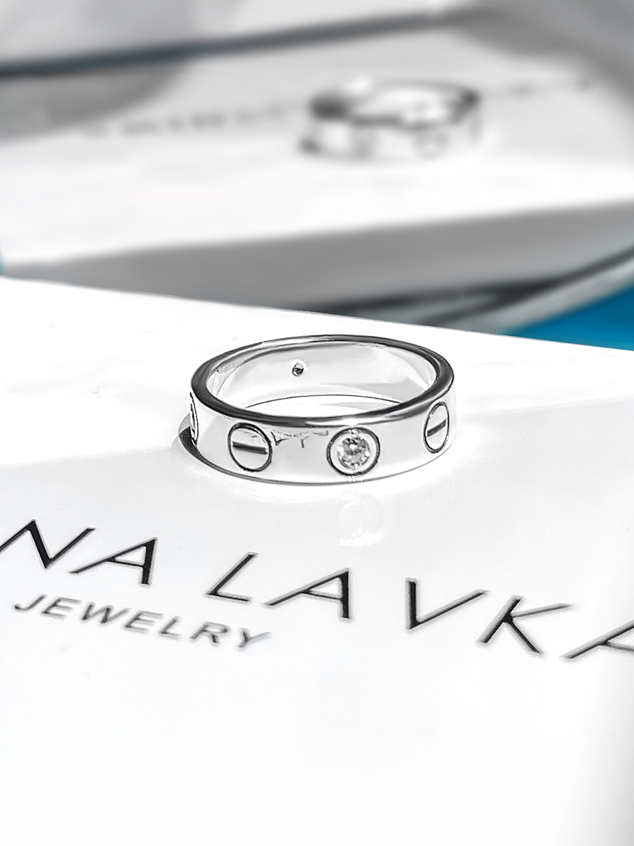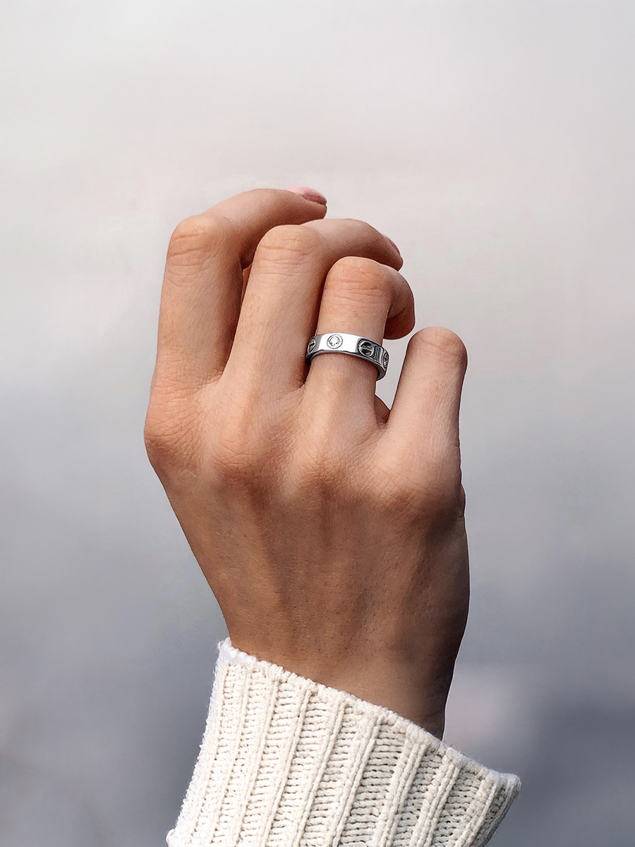 Stylowy i lakoniczny srebrny pierścionek z cyrkonią.