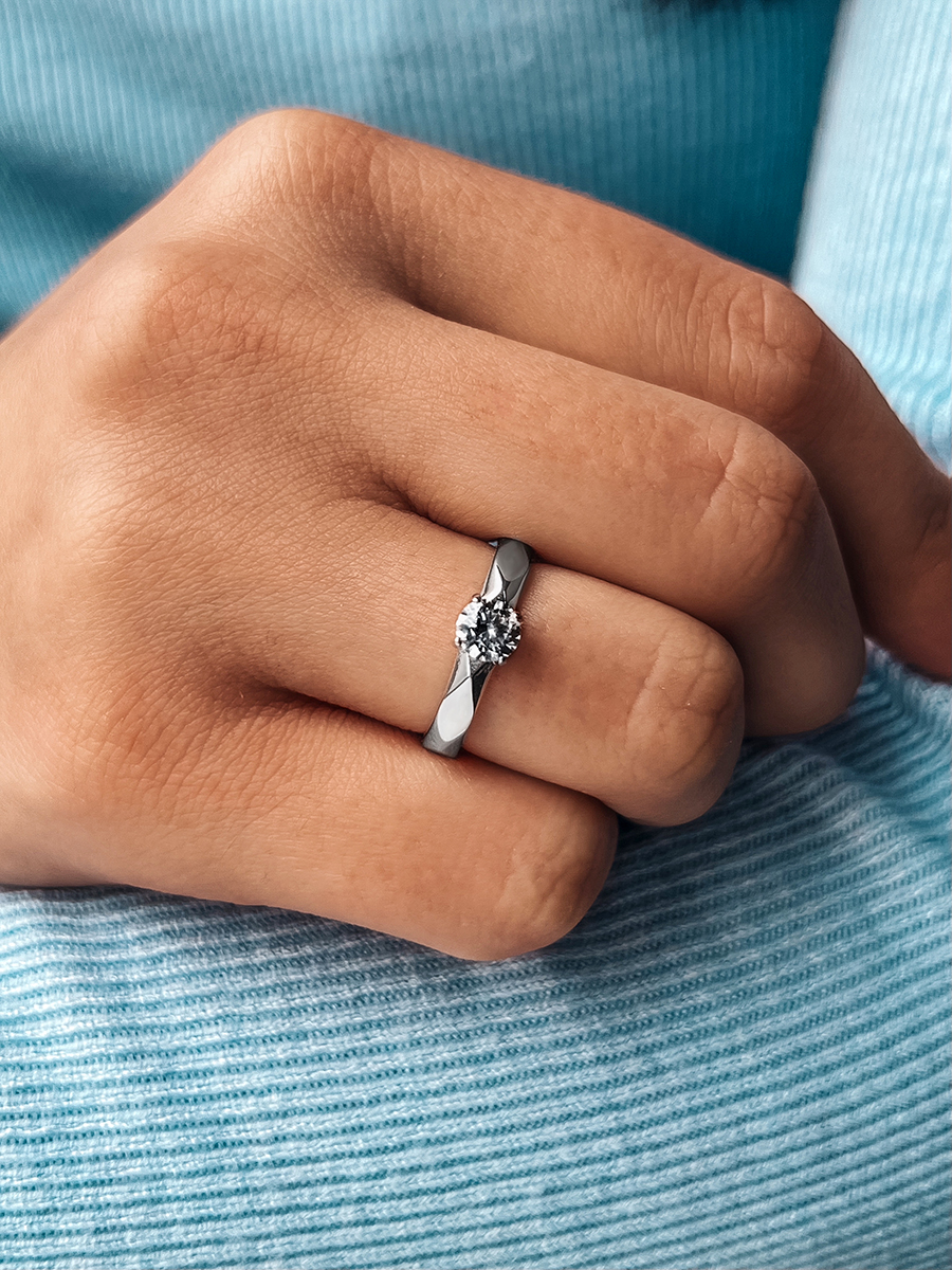 Oryginalny srebrny pierścionek o niezwykłej geometrii, który z pewnością przyciągnie uwagę innych. A także wyobraź sobie, jak taki pierścionek będzie wyglądał w połączeniu z Twoim ulubionym torem lub obrączką