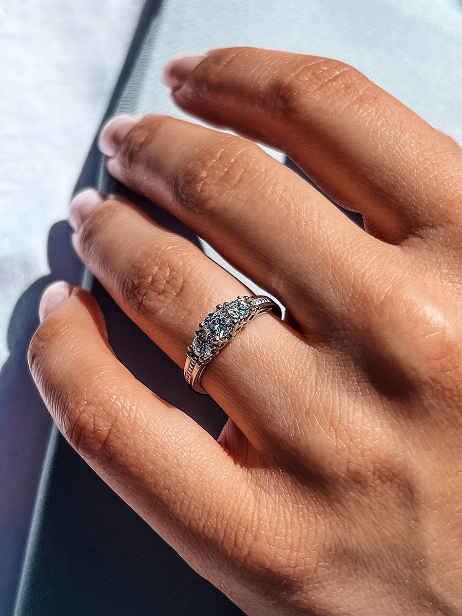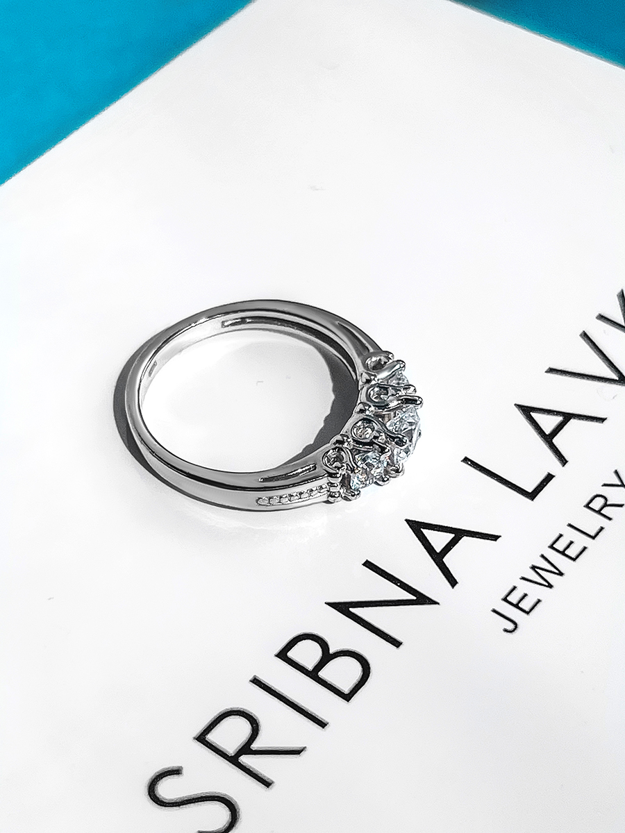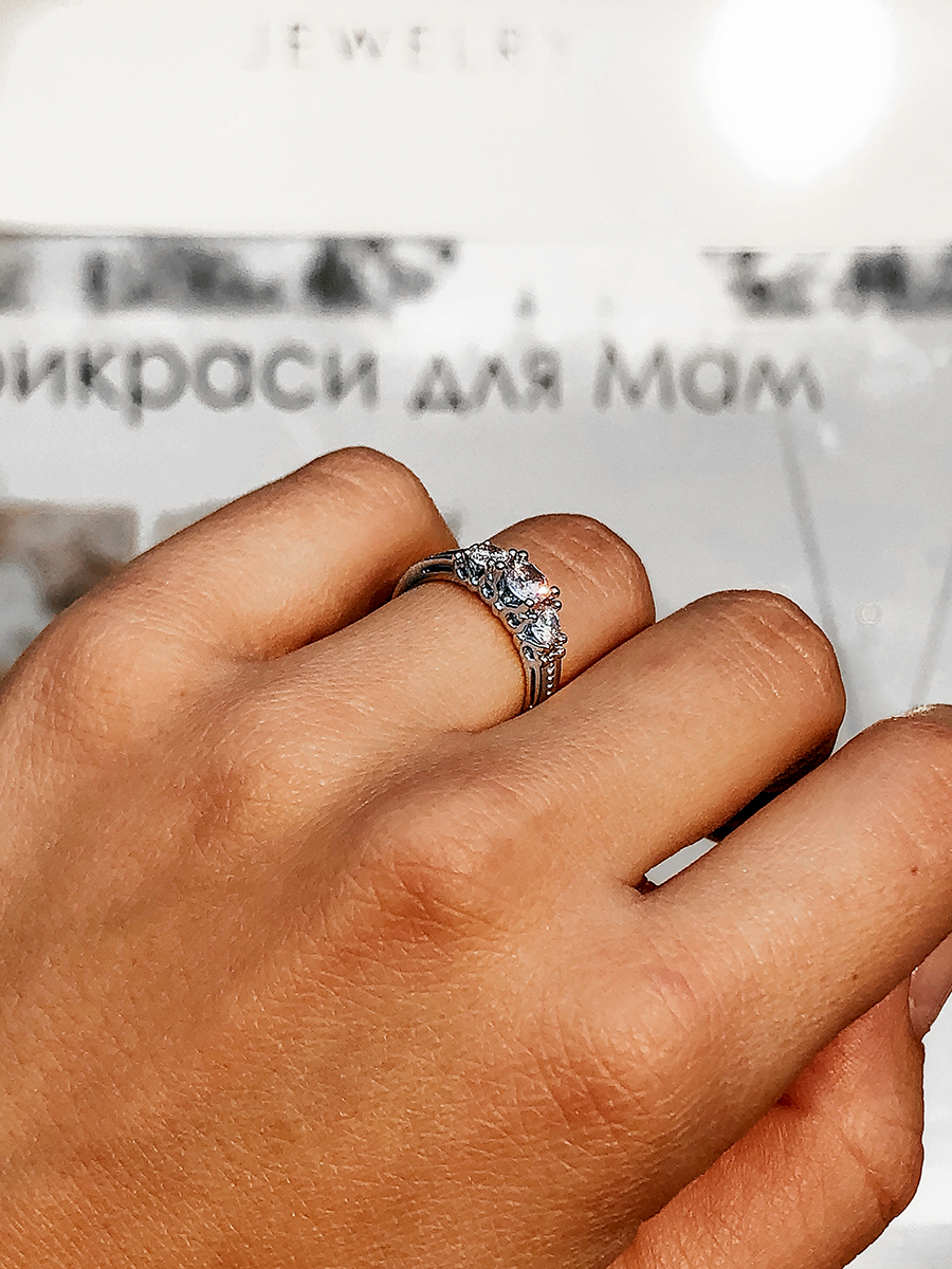 Błyszczący pierścionek o klasycznym wzorze z cyrkoniami sześciennymi z diamentową fasetą.