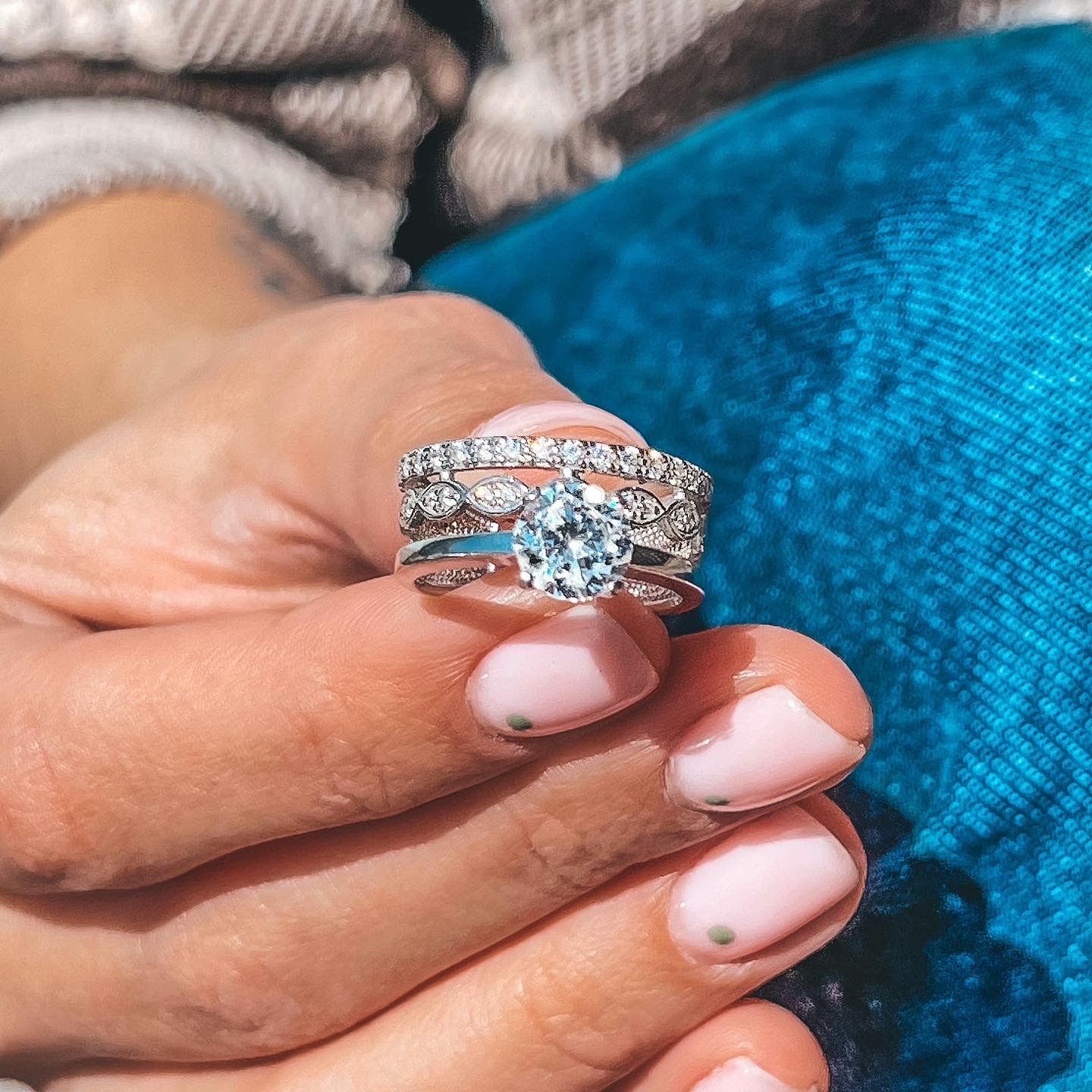 Niekwestionowany hit wszechczasów. Błyszczący, rodowany srebrny pierścionek z cyrkoniami sześciennymi wysadzanymi diamentami.
