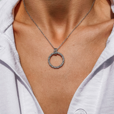 Stylowy srebrny naszyjnik stworzony i wykończony ręcznie. Łańcuszek wyposażony jest w suwakowy regulator rozmiaru