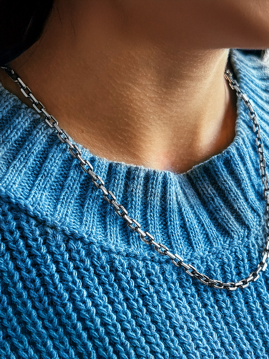Najwyższej jakości srebrny łańcuszek o szlifie diamentowym, który nadaje mu niezrównany połysk i blask. Łańcuszek ten, wykonany ręcznie, wyróżnia się wytrzymałością i nienaganną jakością.