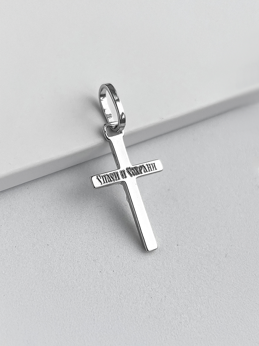 Srebrny krzyż z krucyfiksem.