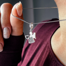 Srebrny wisiorek do łańcuszków i bransoletek z rodowanymi i wyszlifowanymi diamentami cyrkoniami sześciennymi.