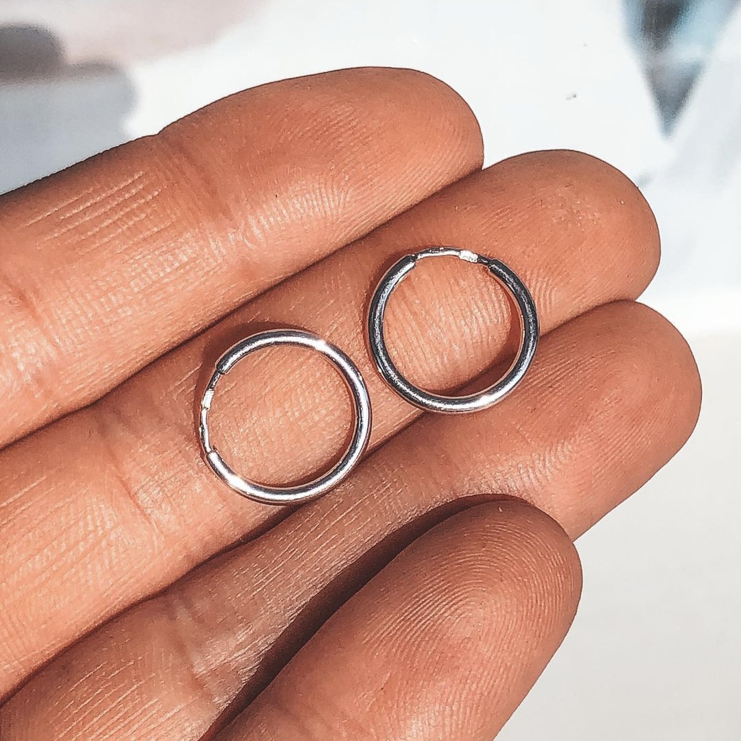 Srebrne kolczyki-pierścionki pokryte rodem.